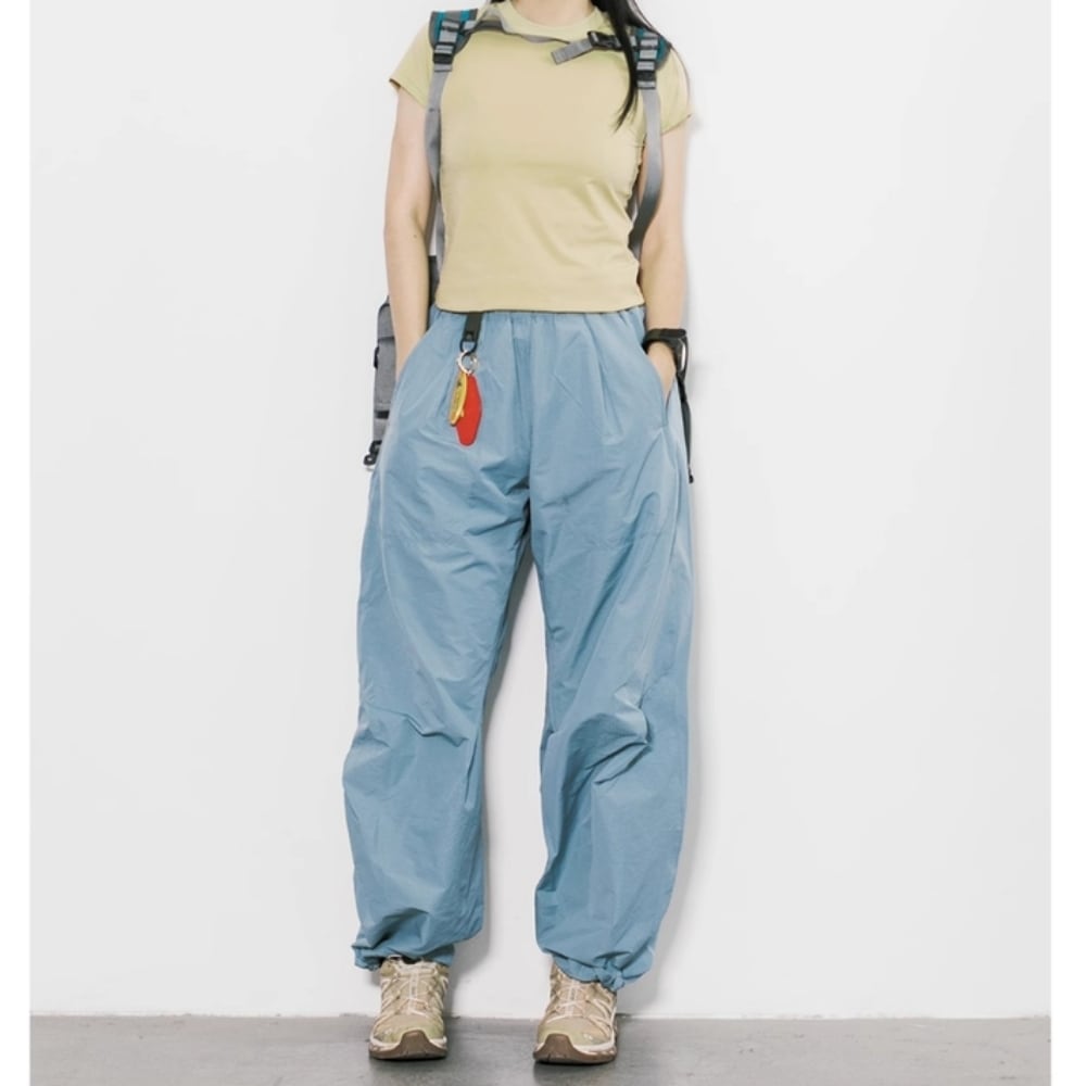 シャカシャカでさらっとした着心地のパラシュートパンツ。