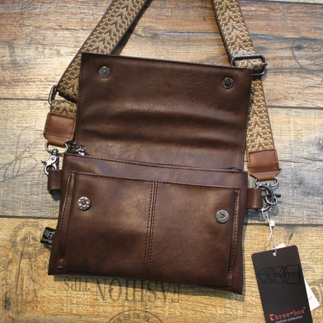 ヴィンテージ感のあるデニム生地の多機能ショルダーバッグ。