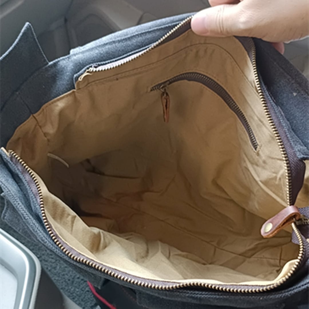 ヴィンテージ感のあるデニム生地の多機能ショルダーバッグ。