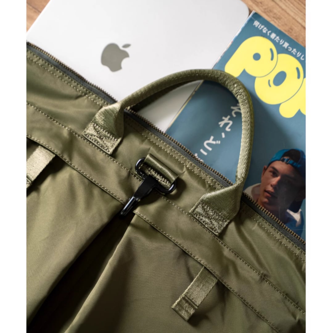 無駄のないシルエットながら、フロントにはファスナー付きポケットやループ付きフラップポケットを配置し、収納力も抜群。