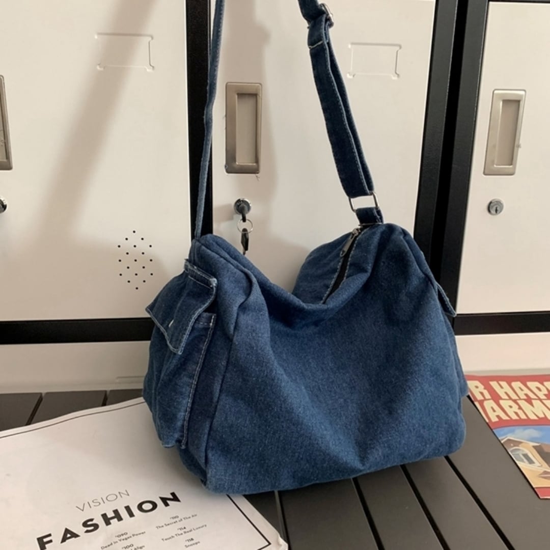 やわらかいデニム素材で作られた、スタイリッシュなデニムメッセンジャーバッグ。
