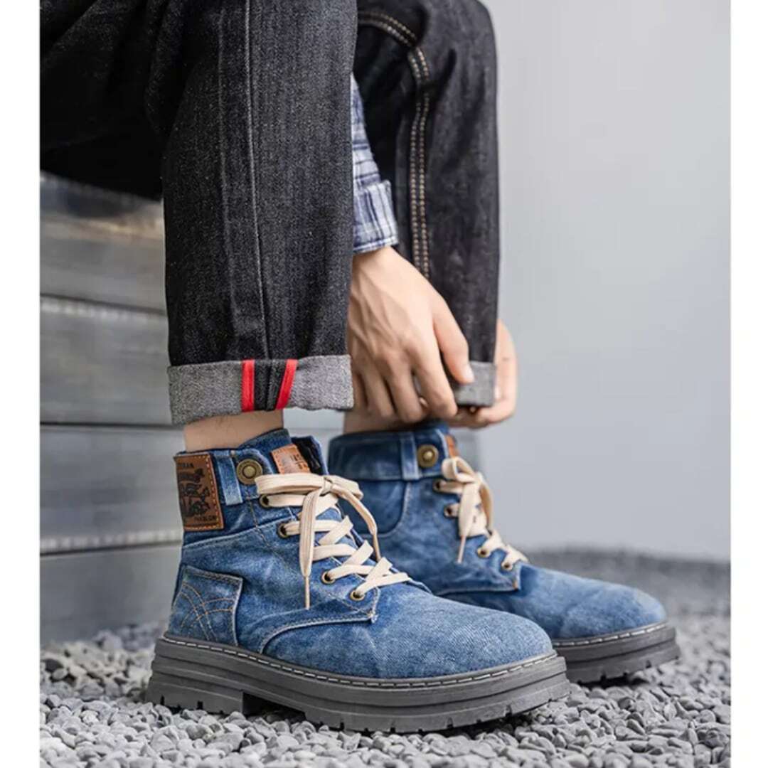 ヴィンテージ感のあるデニム生地の多機能ショルダーバッグ。