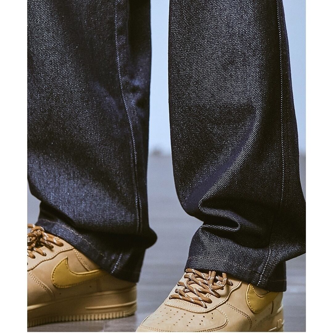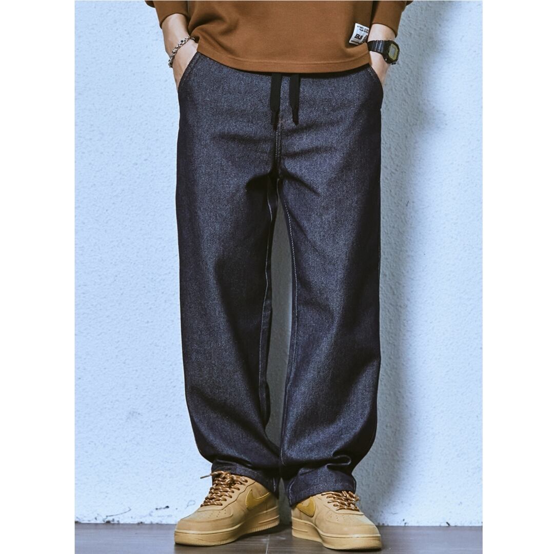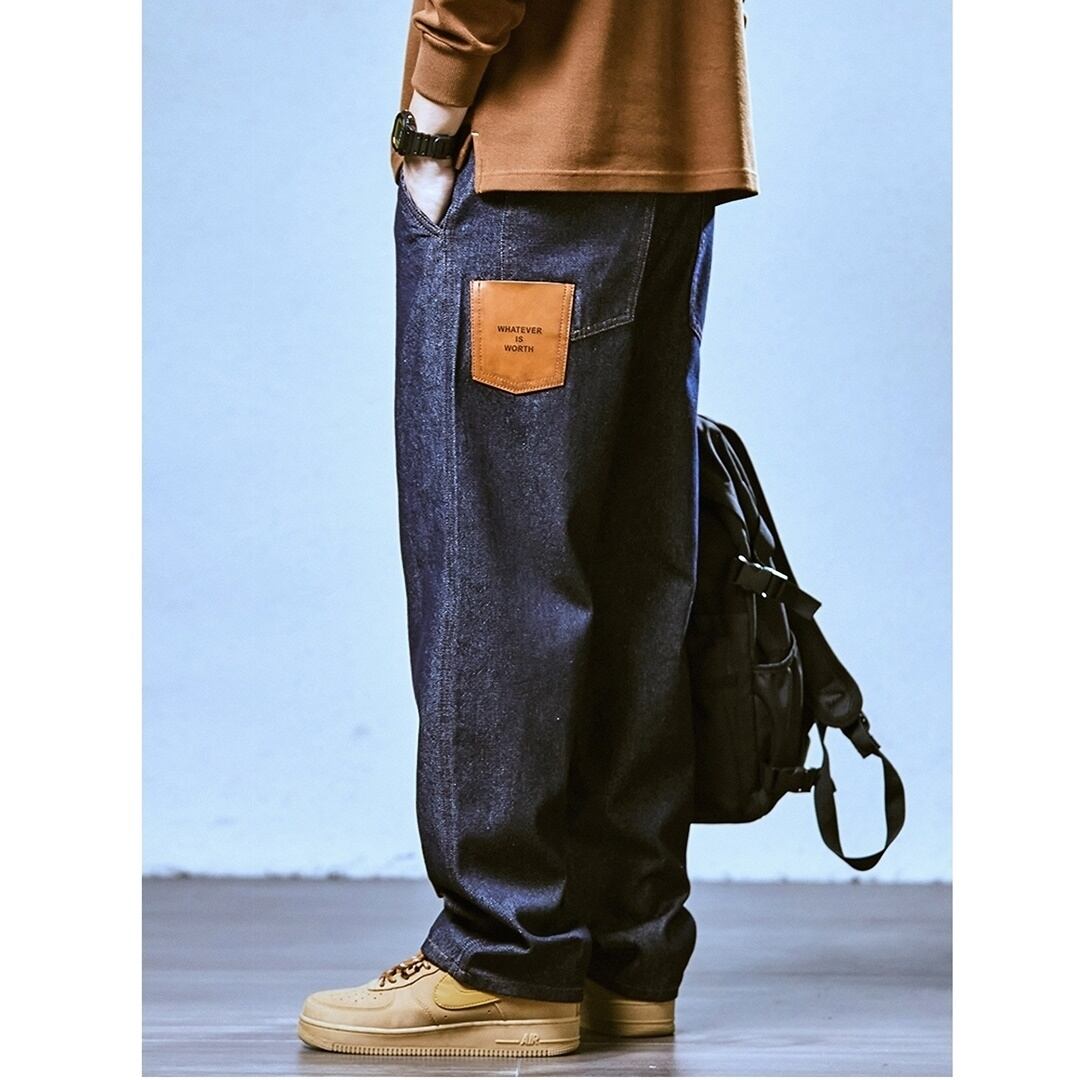 深みのあるダークブルーカラーが印象的なストレートデニムジーンズ。