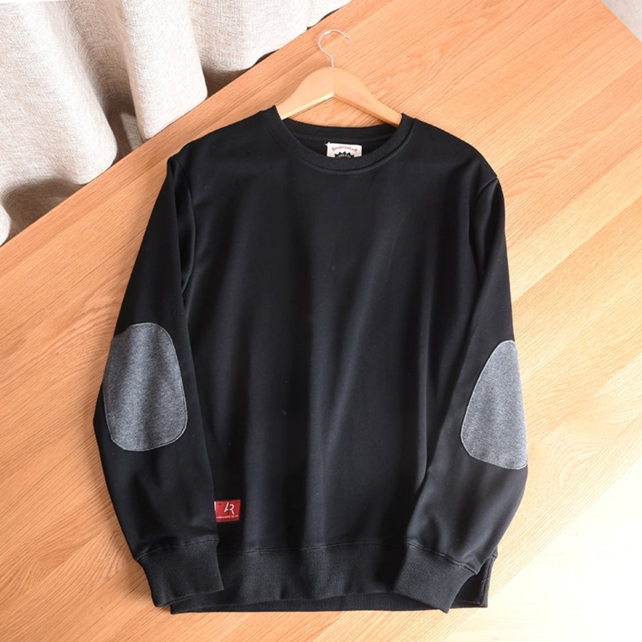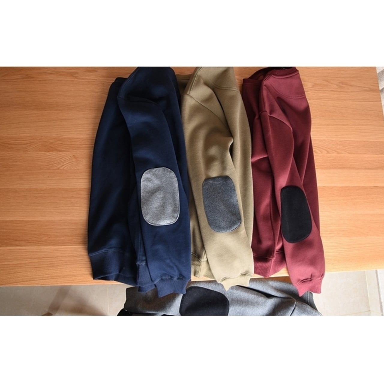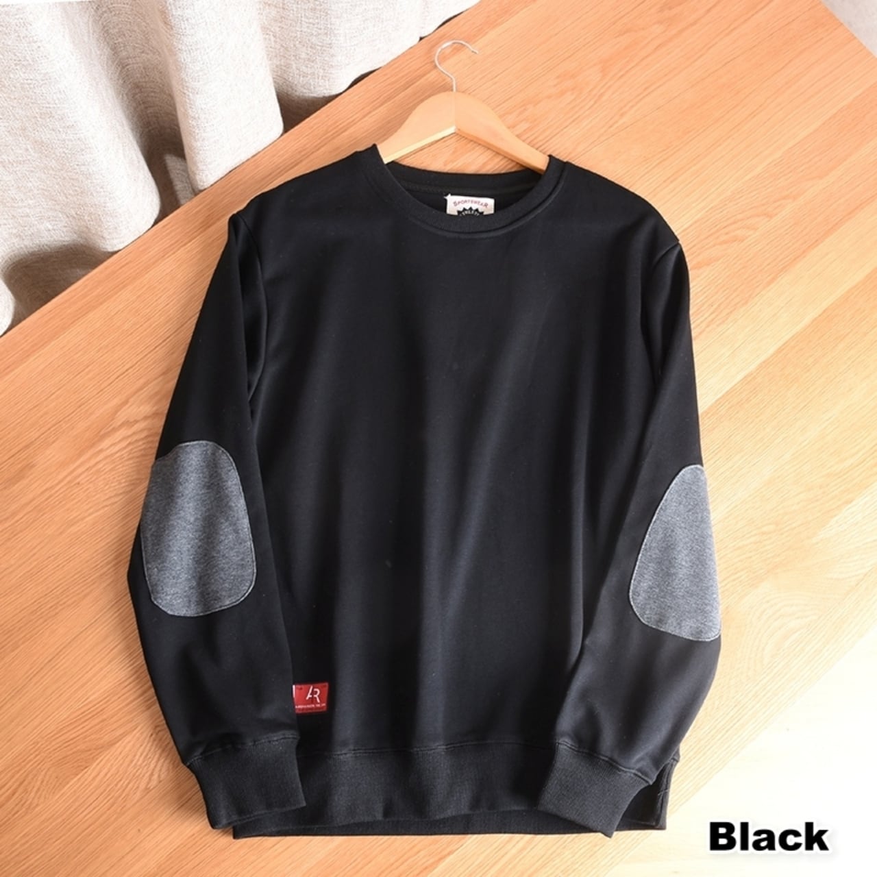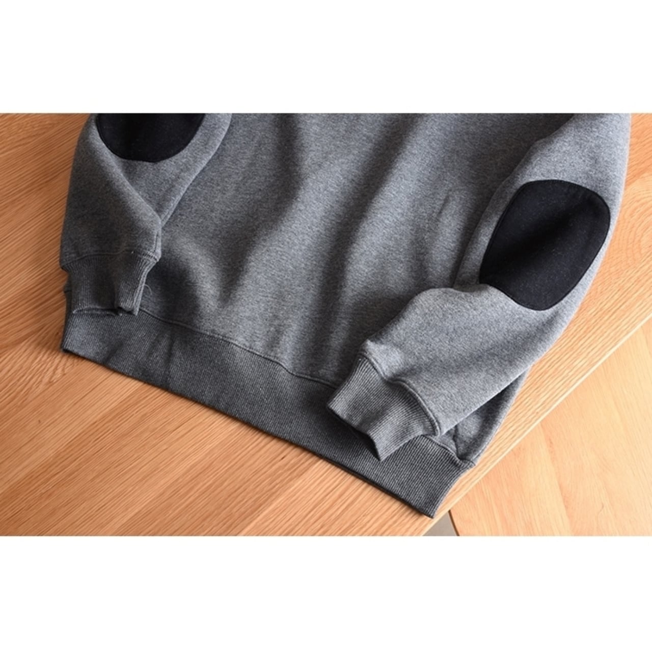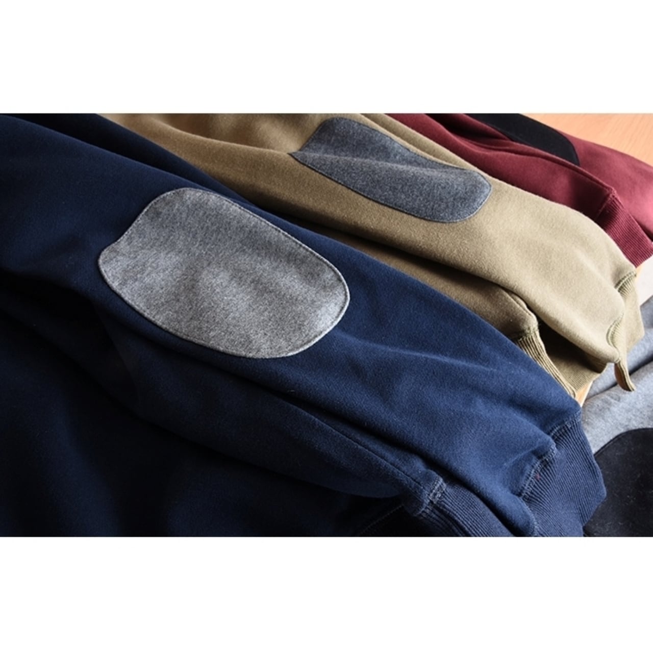 肘あて付きのデザインが特徴的で、カジュアルなスタイルにぴったりの一着です。