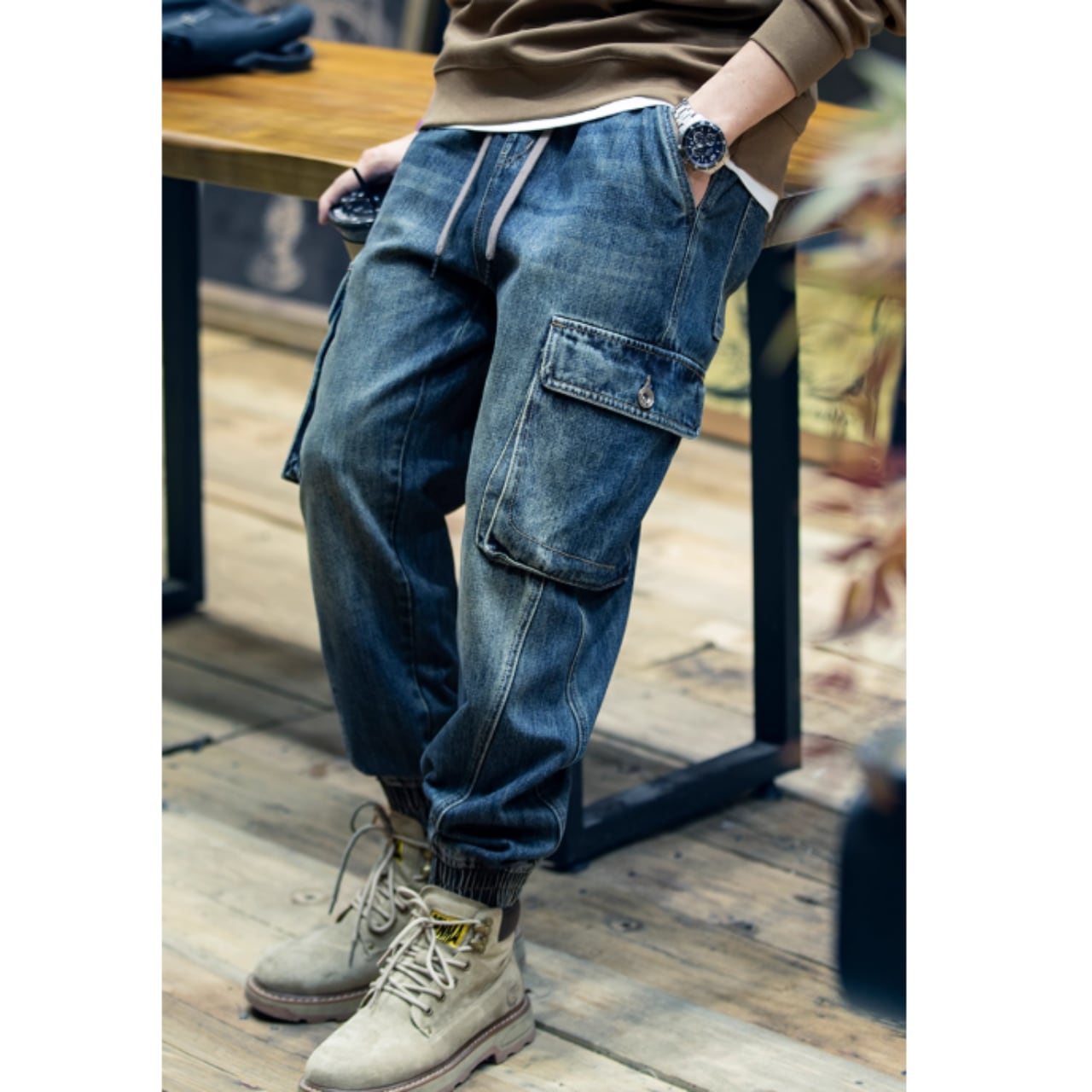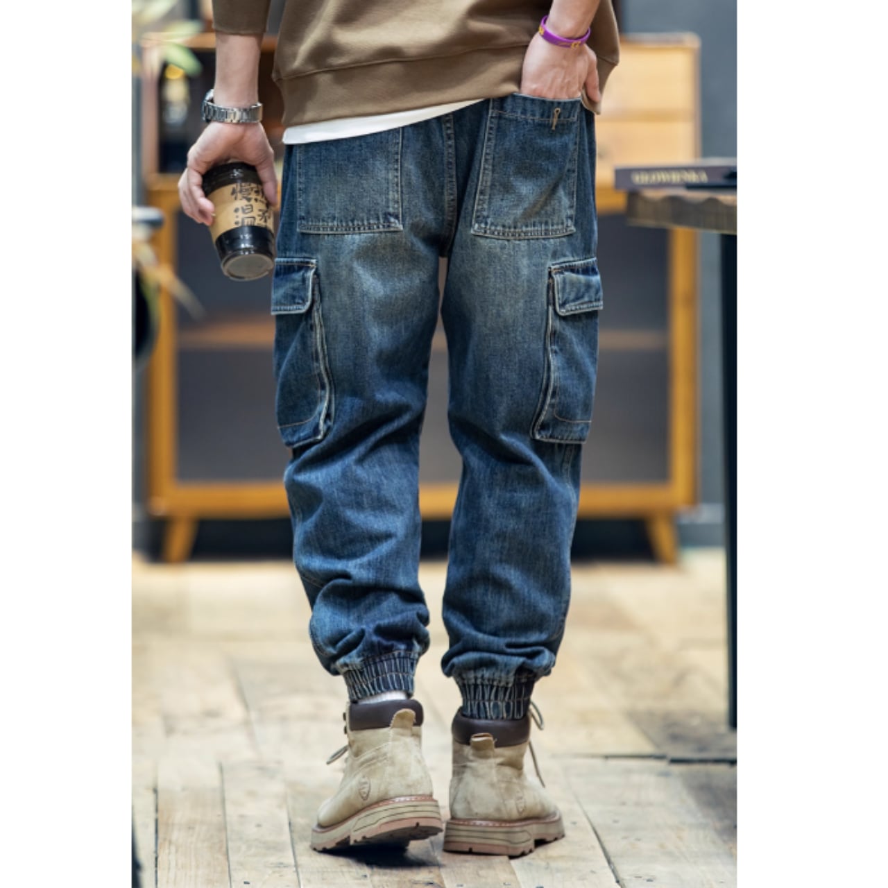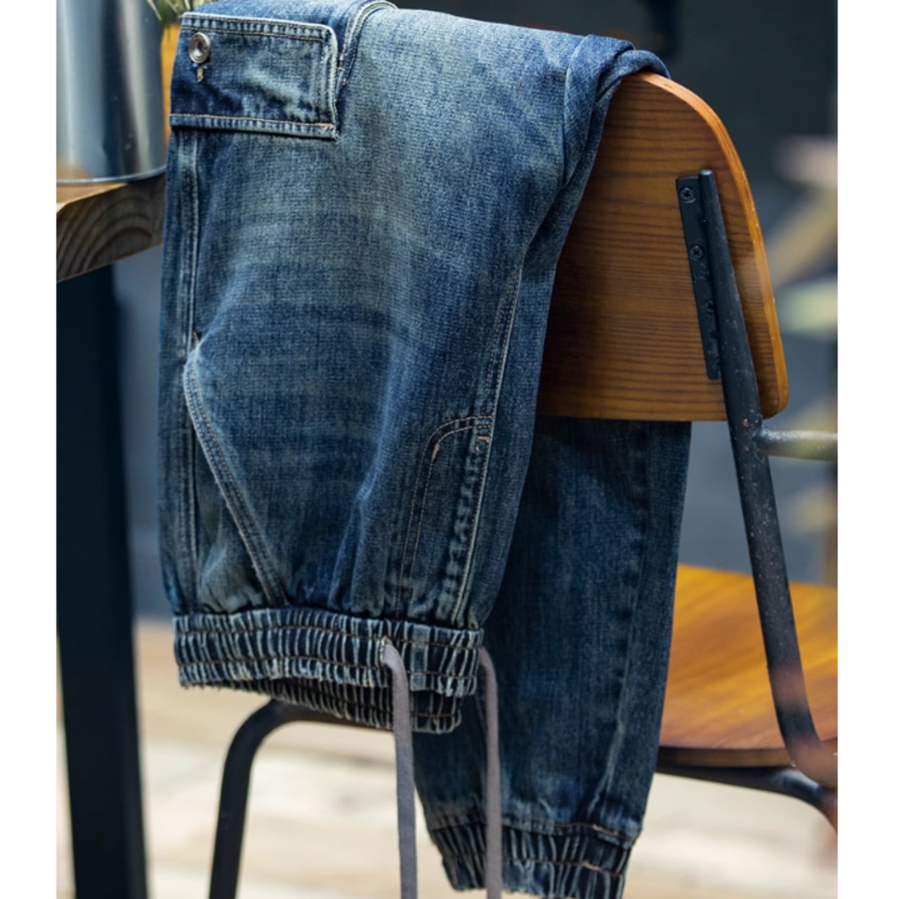 カジュアルでありながらスタイリッシュなジョガーデニムジーンズ。