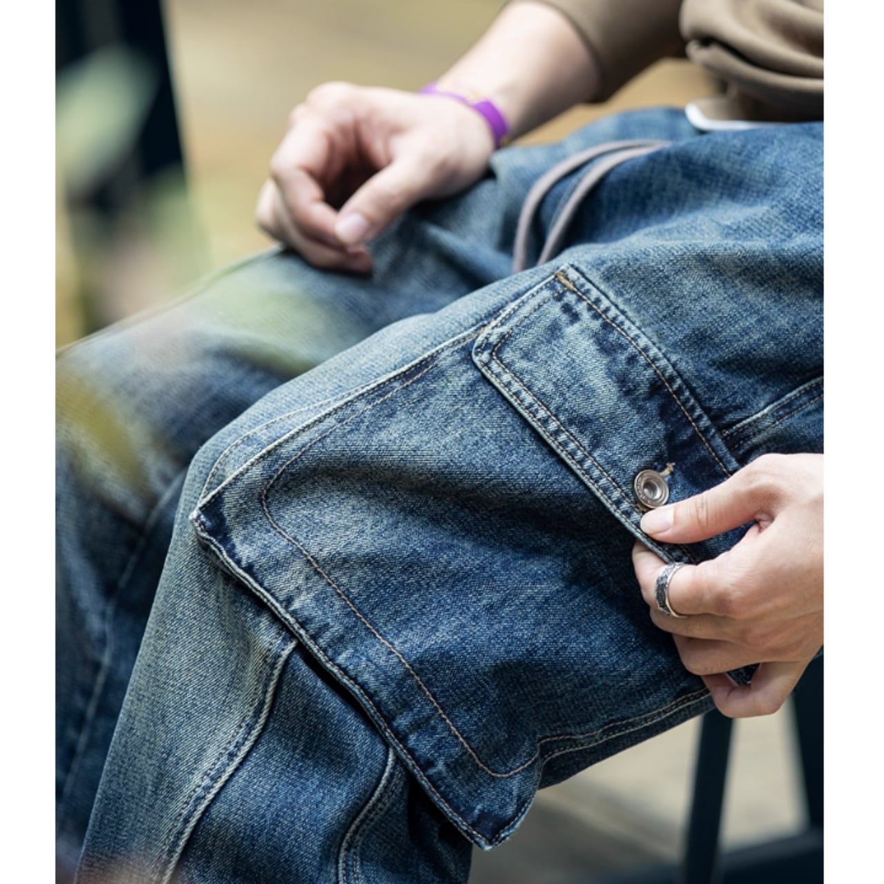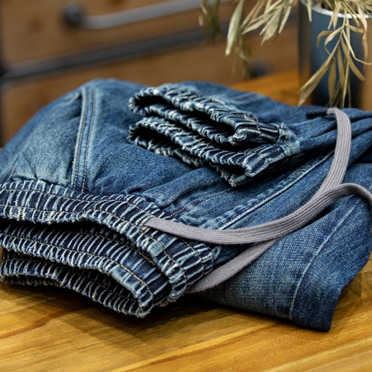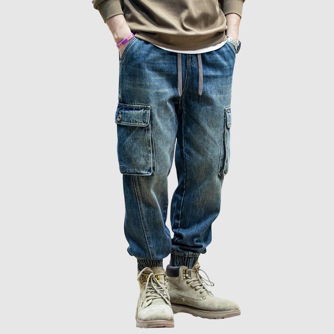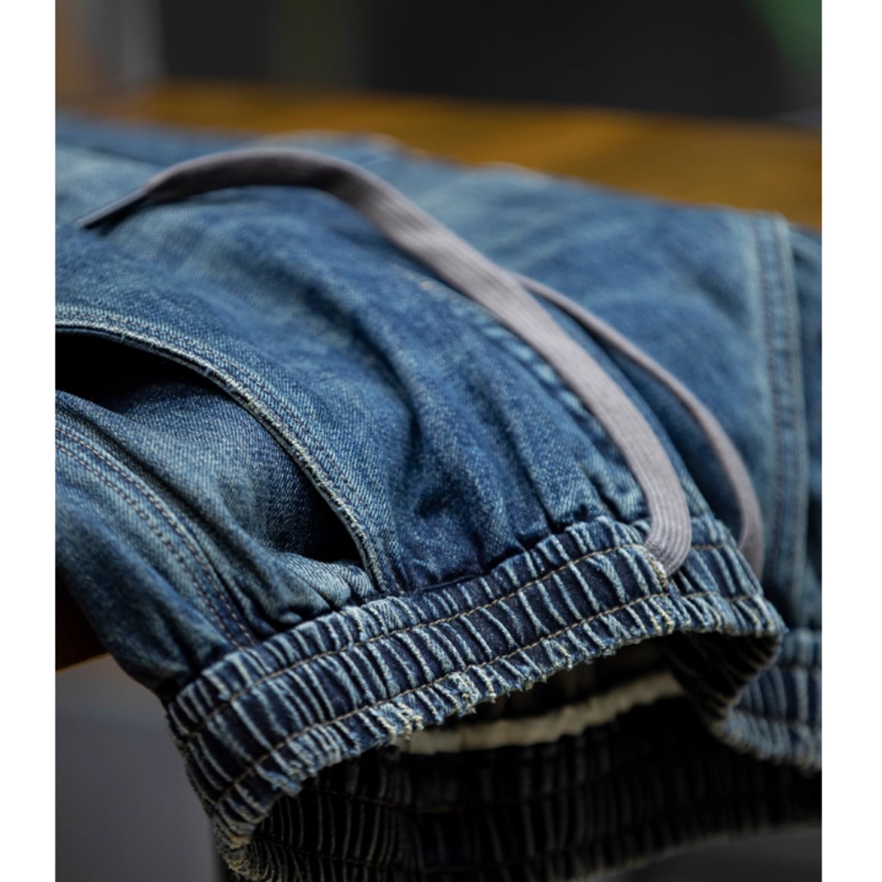 カジュアルでありながらスタイリッシュなジョガーデニムジーンズ。