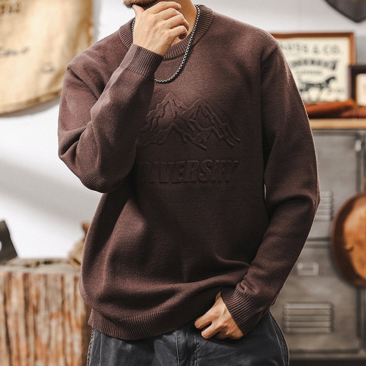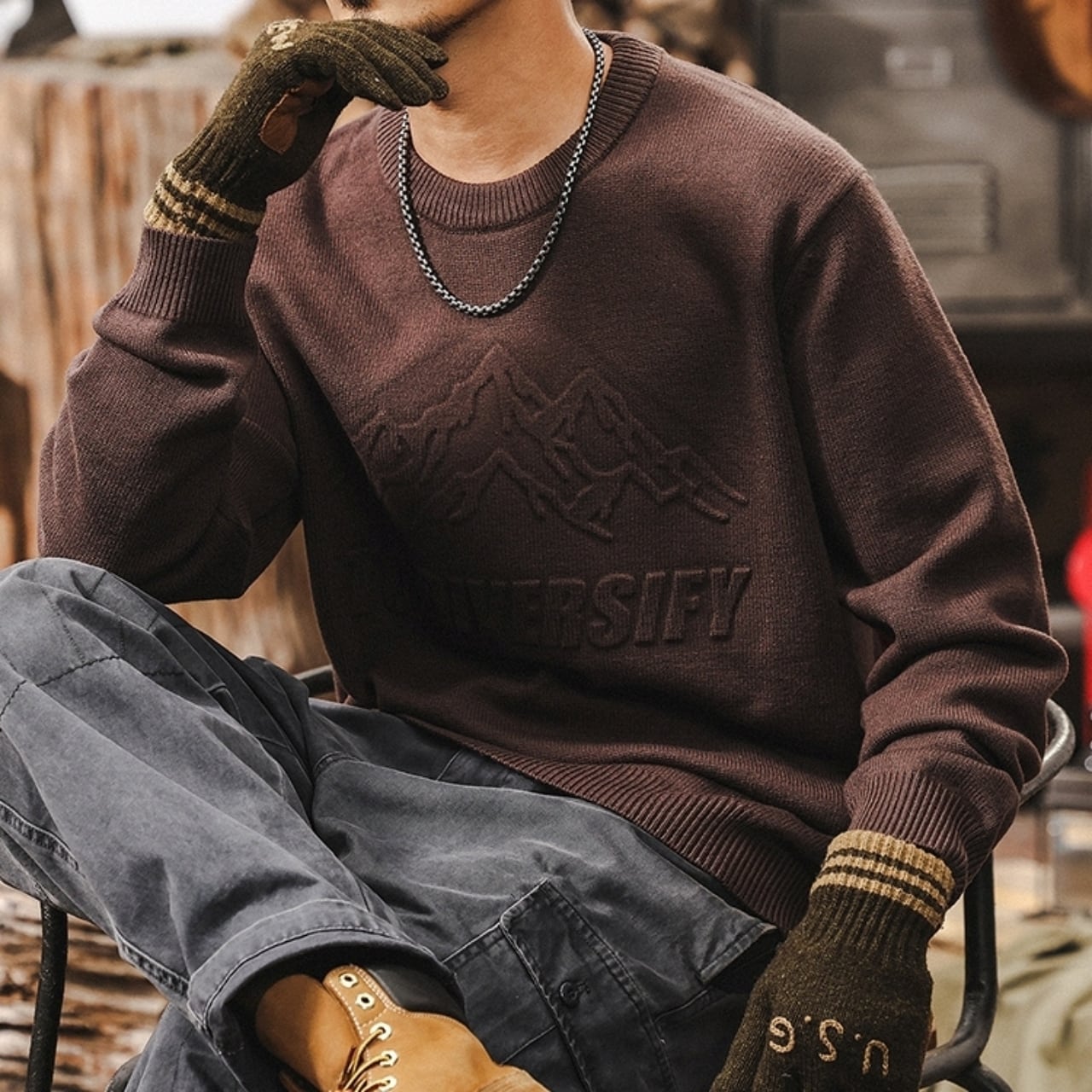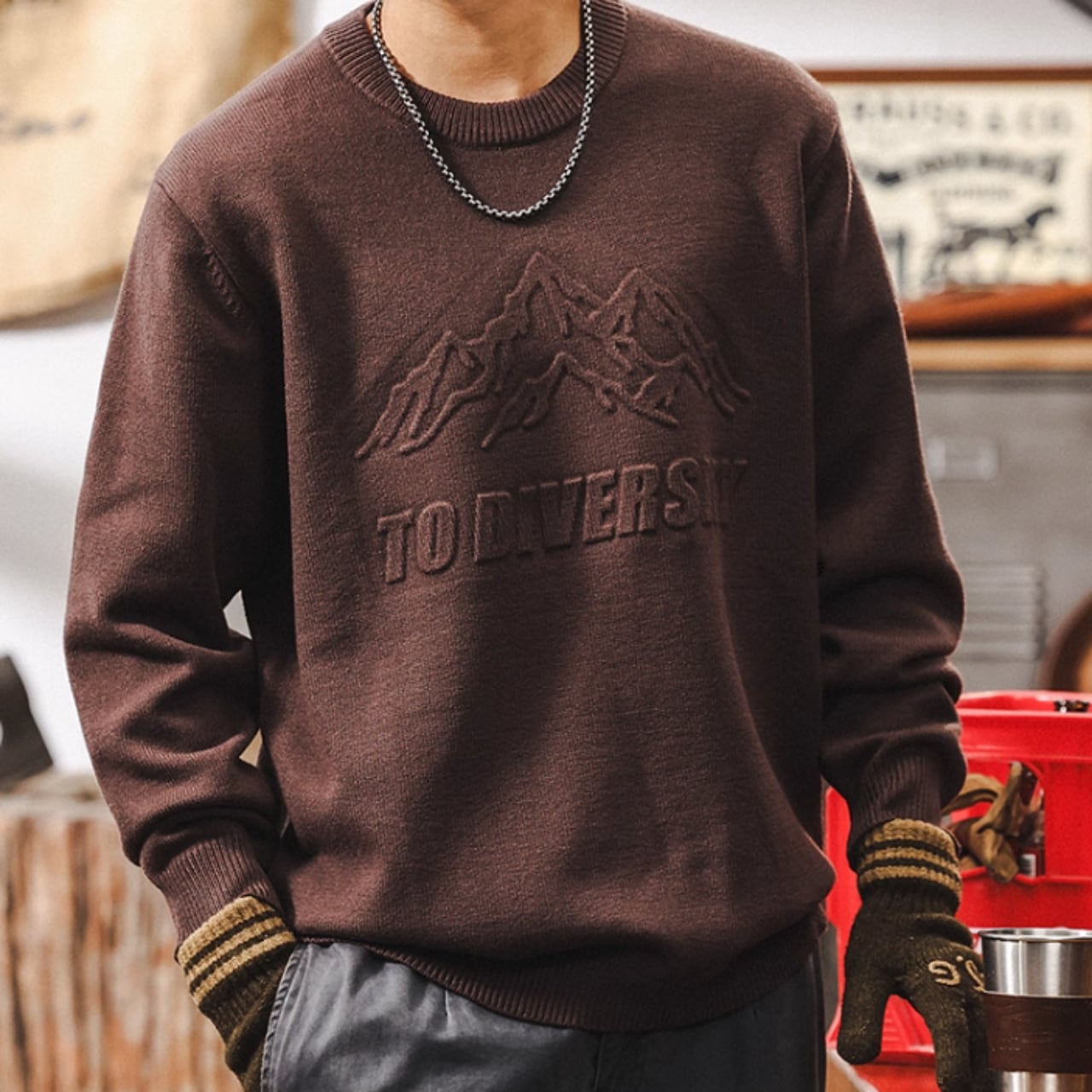 エンボス加工が施された、スタイリッシュなニットトップス。