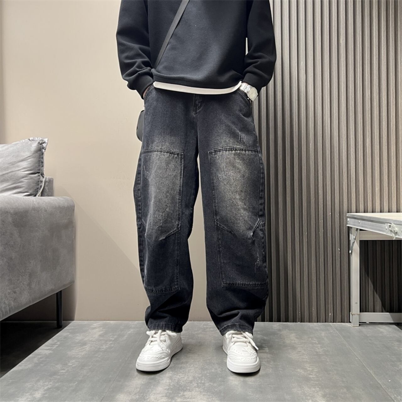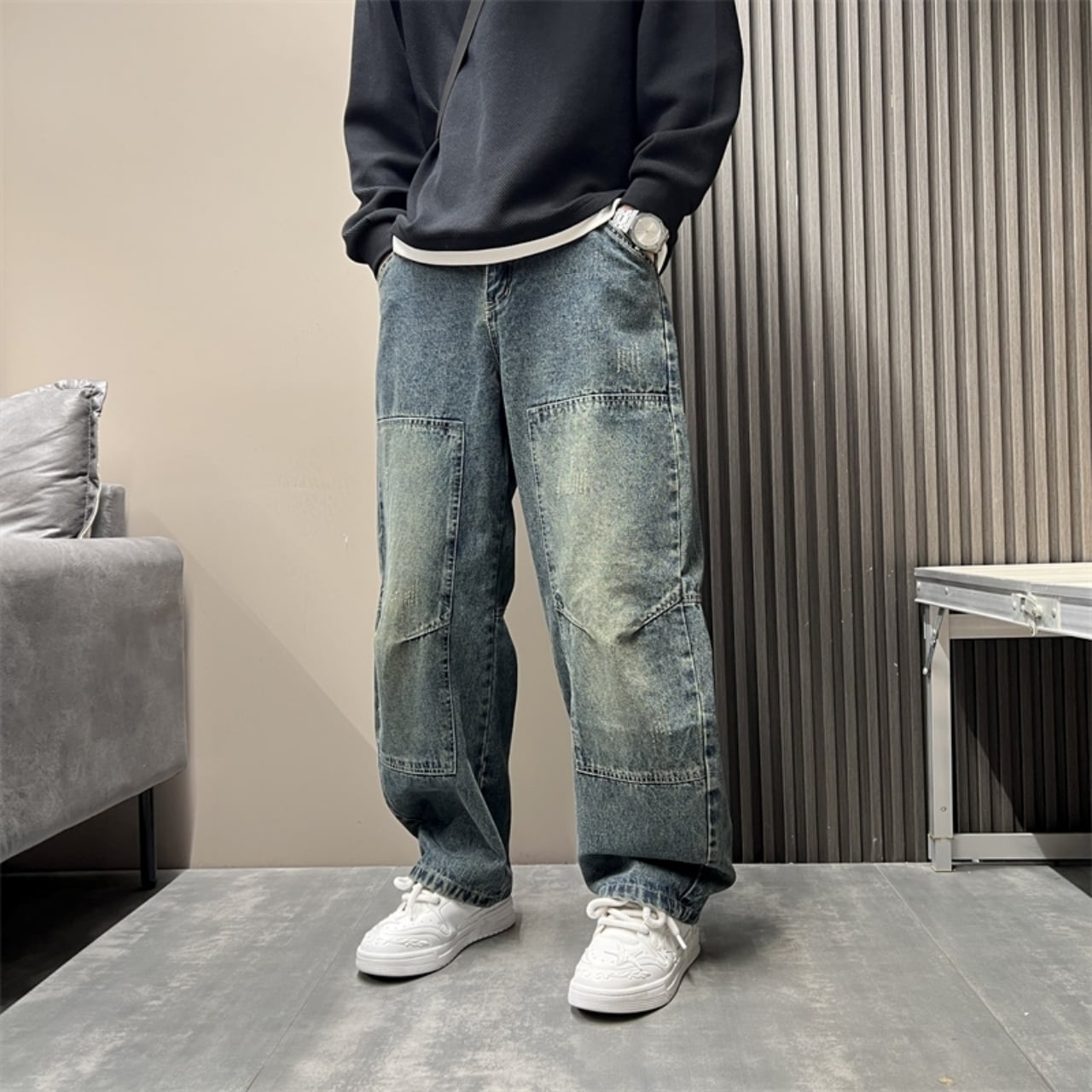 ルーズウォッシュドデニムジーンズ H2672