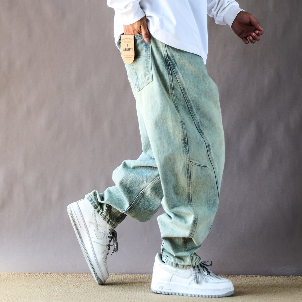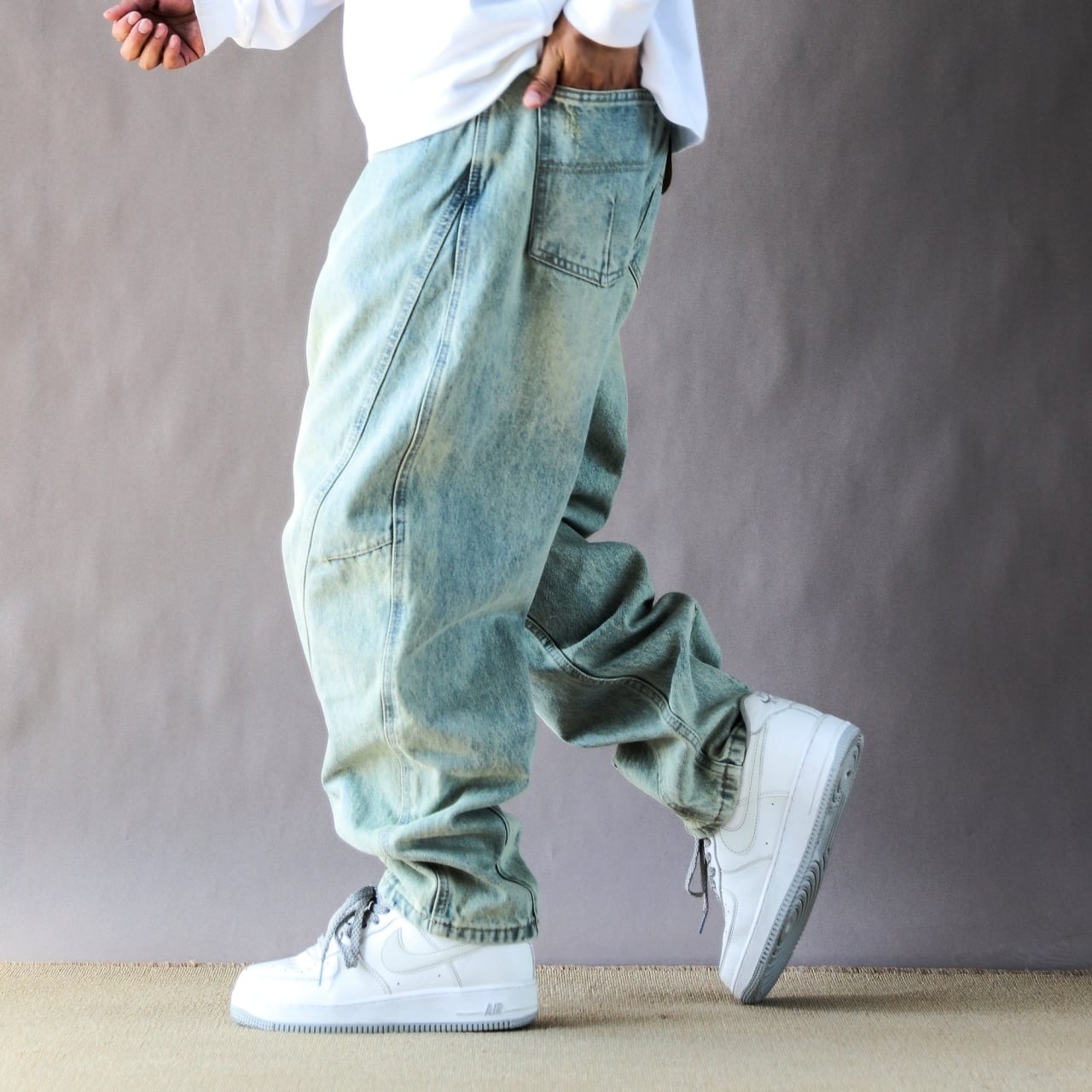 ルーズなシルエットが特徴のルーズストレートデニムジーンズ。