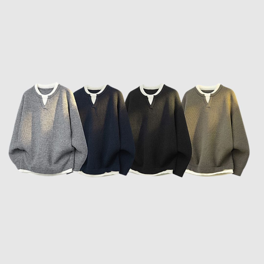 白のインナーとキーネックセーターの重ね着風デザインで、こなれたカジュアル感を演出します♪