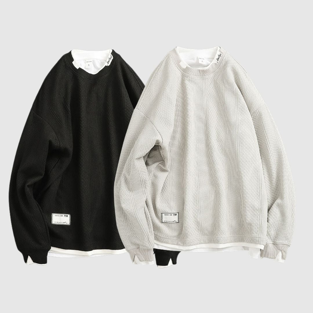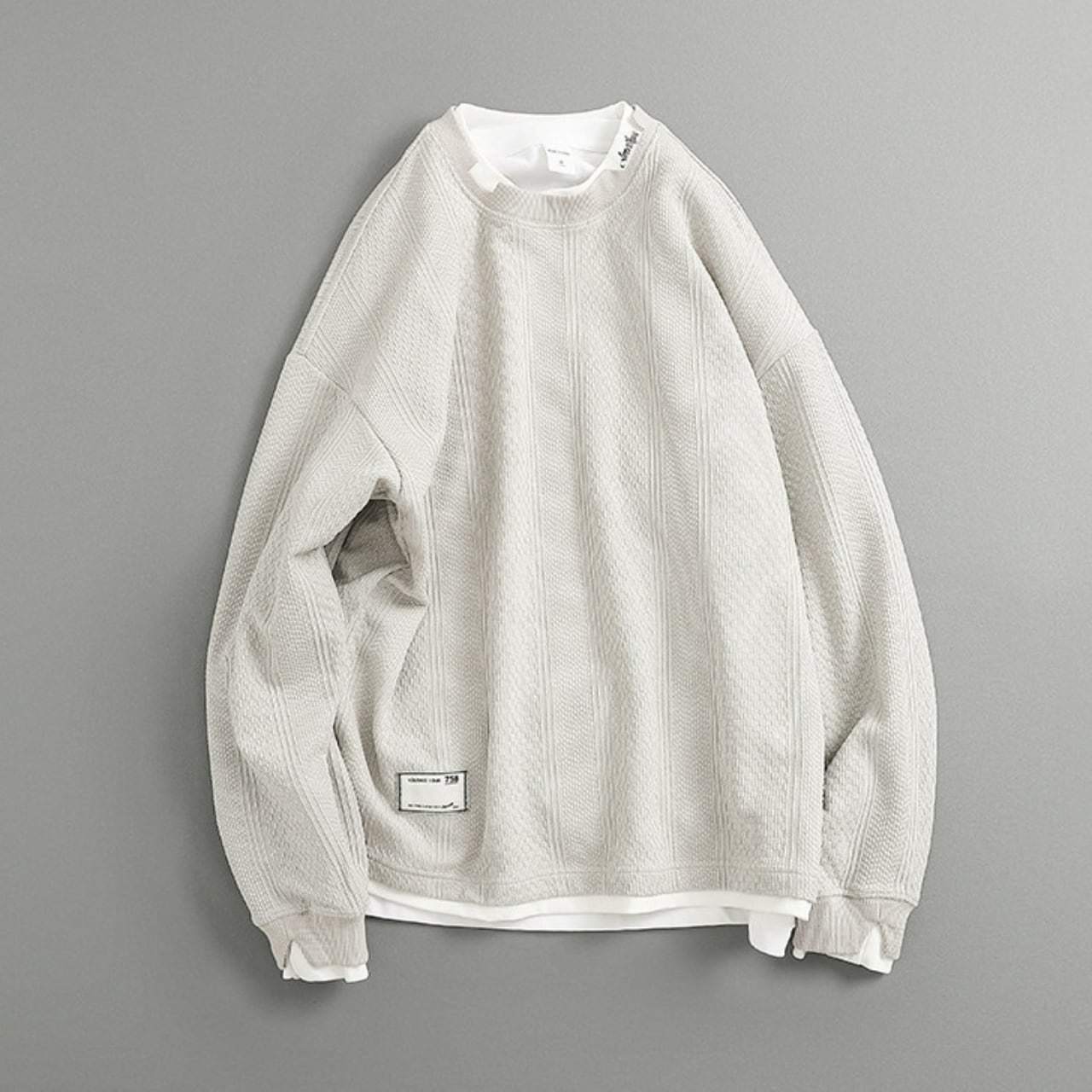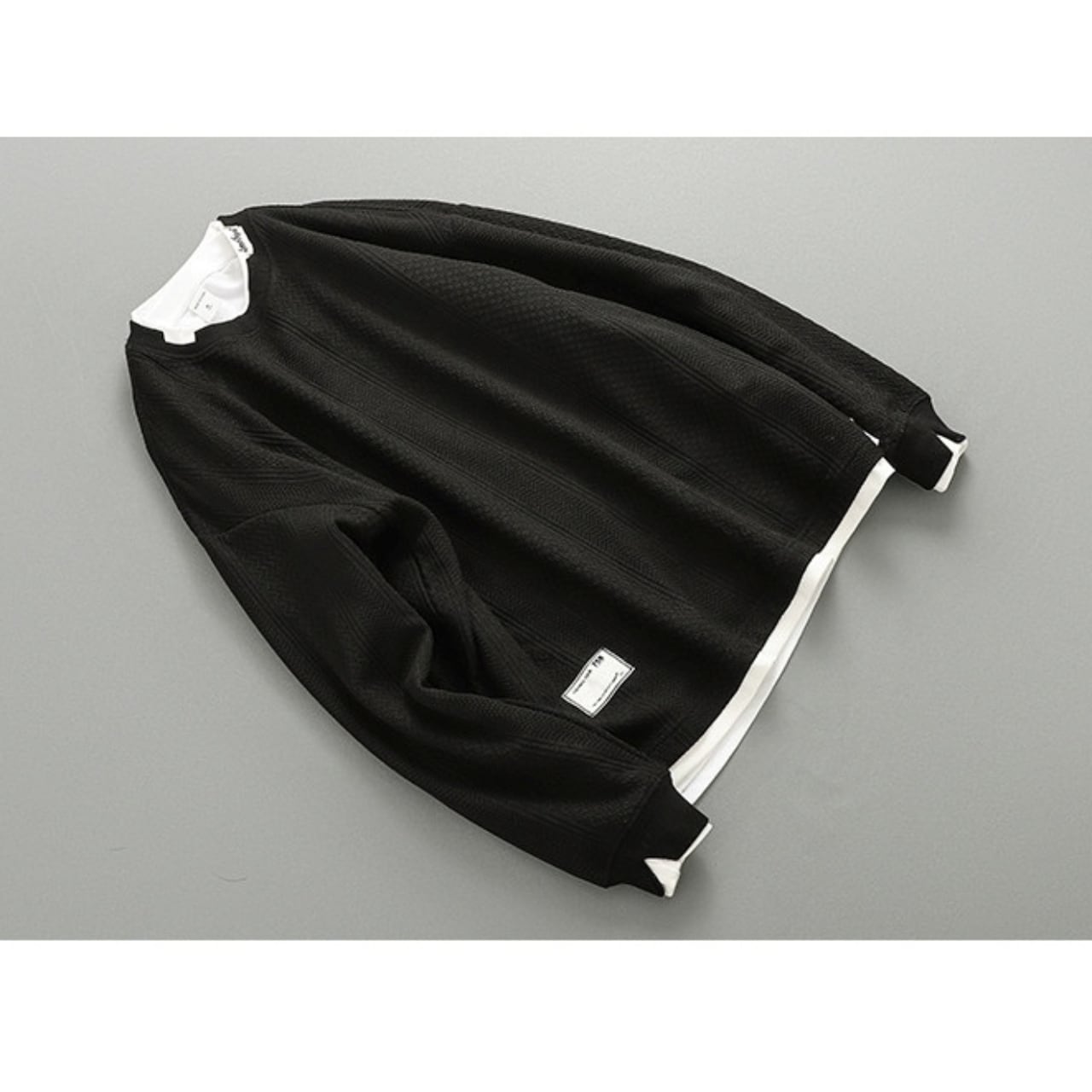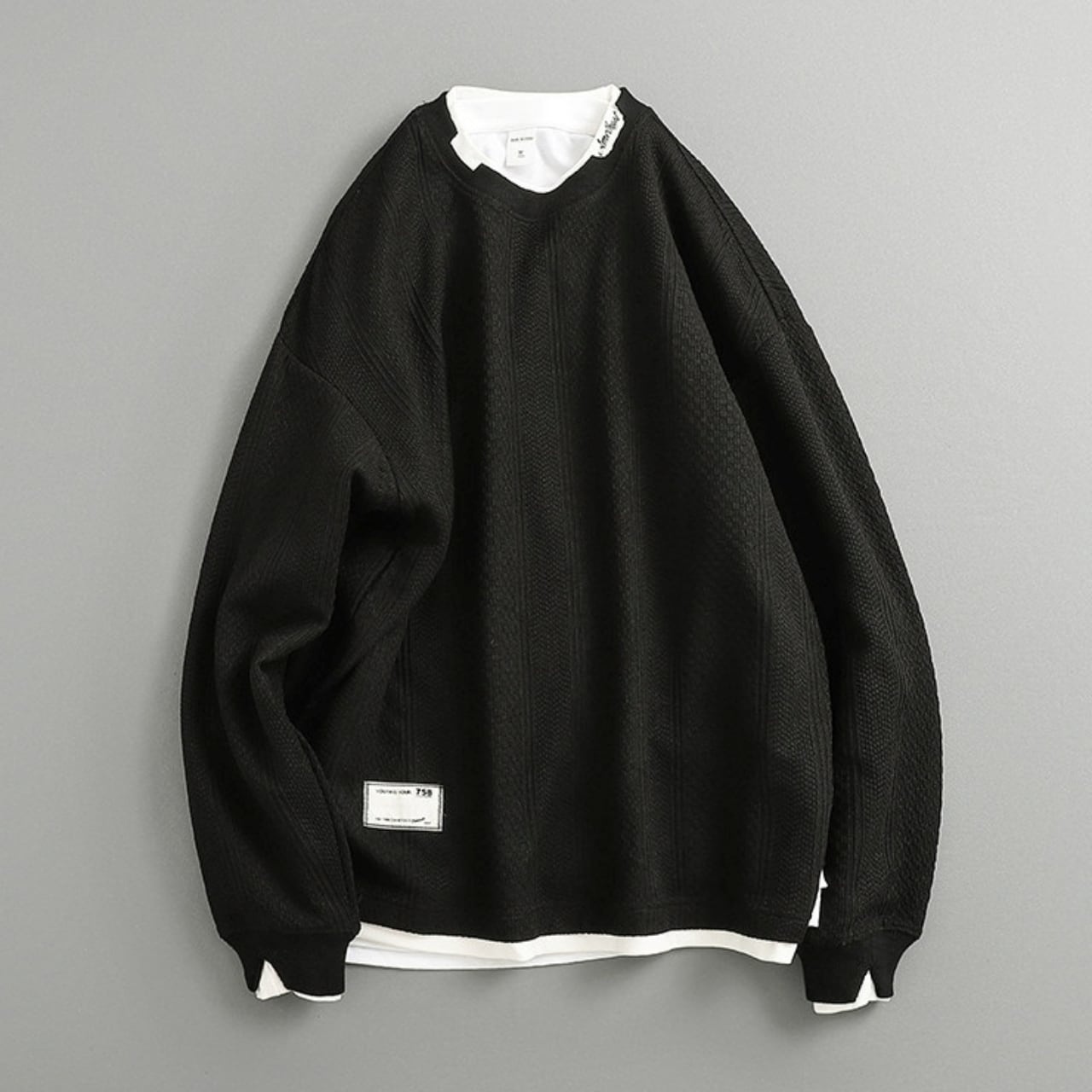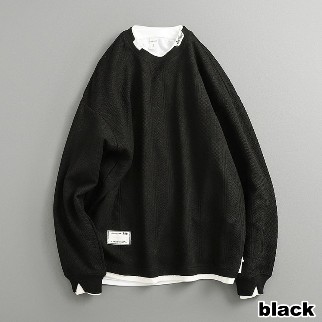 重ね着風デザインが魅力のフェイクレイヤードトップス。