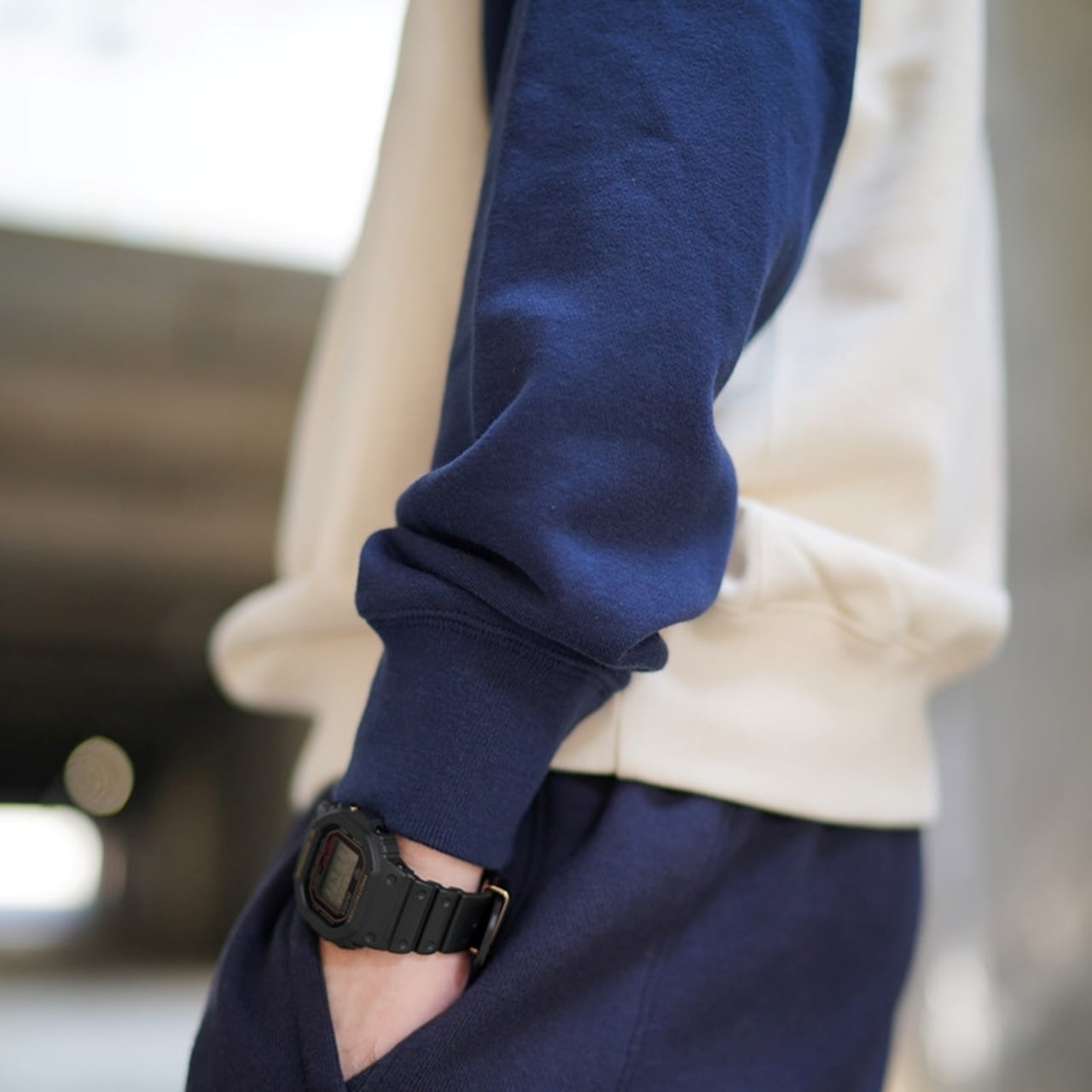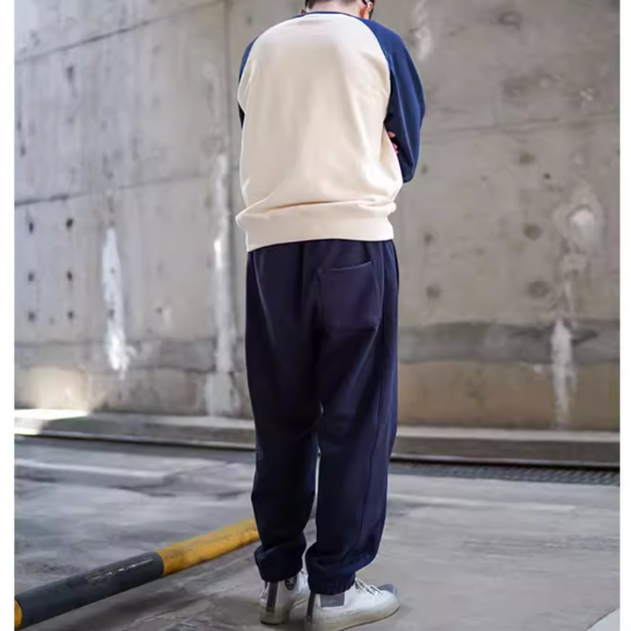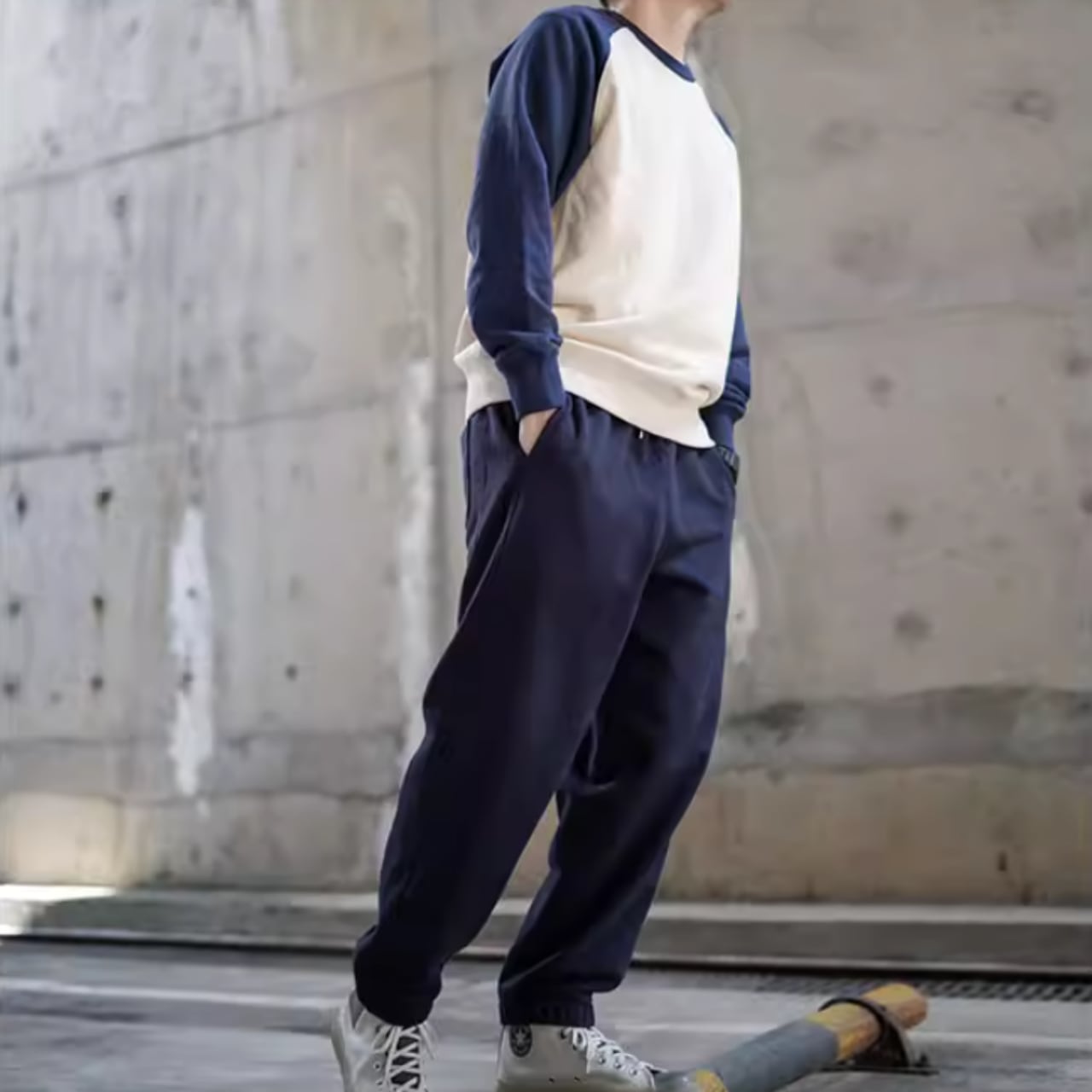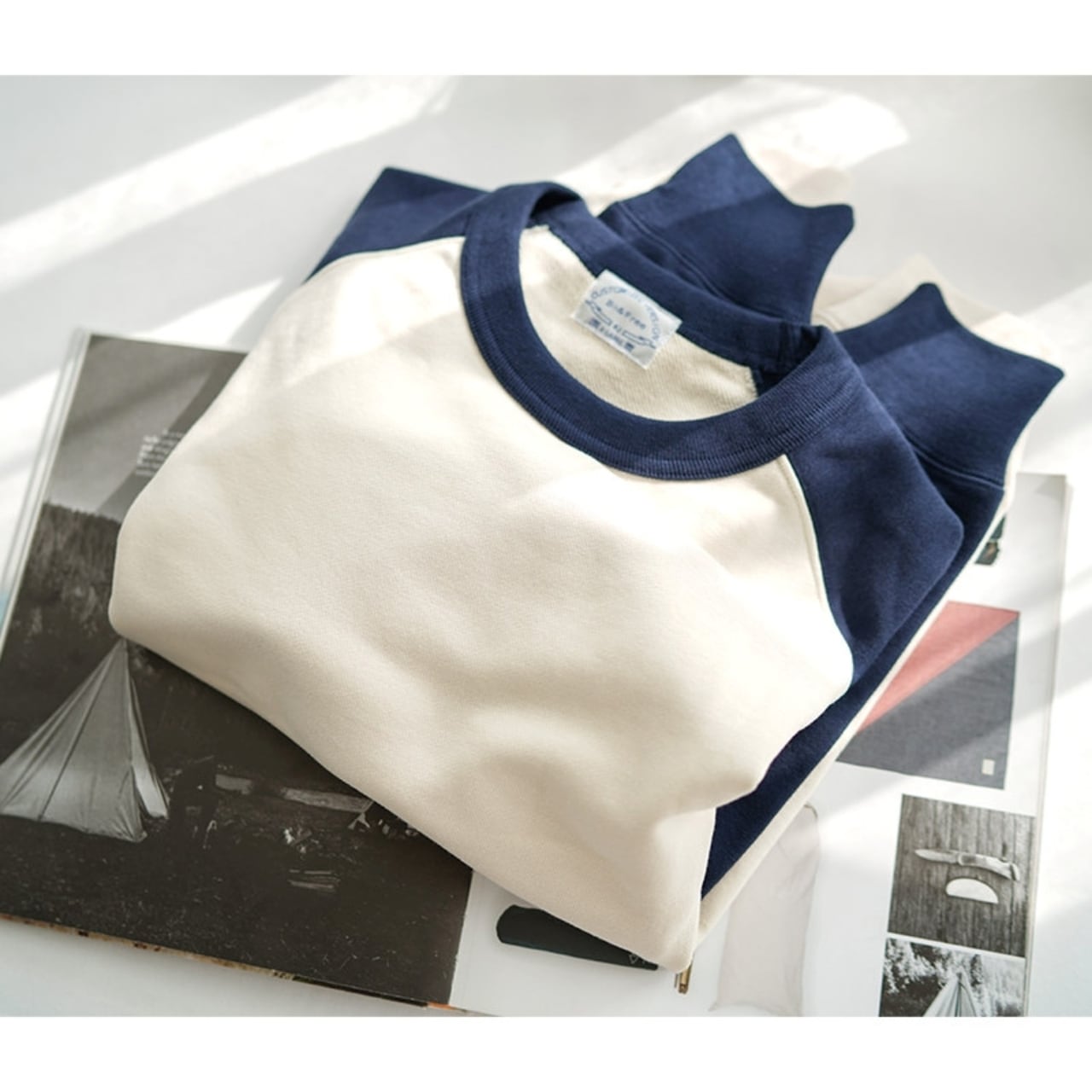 カジュアルコーデにぴったりなバイカラーラグランスウェットシャツ。