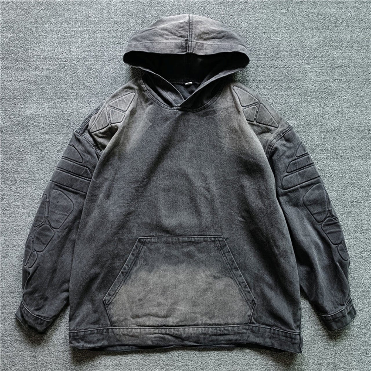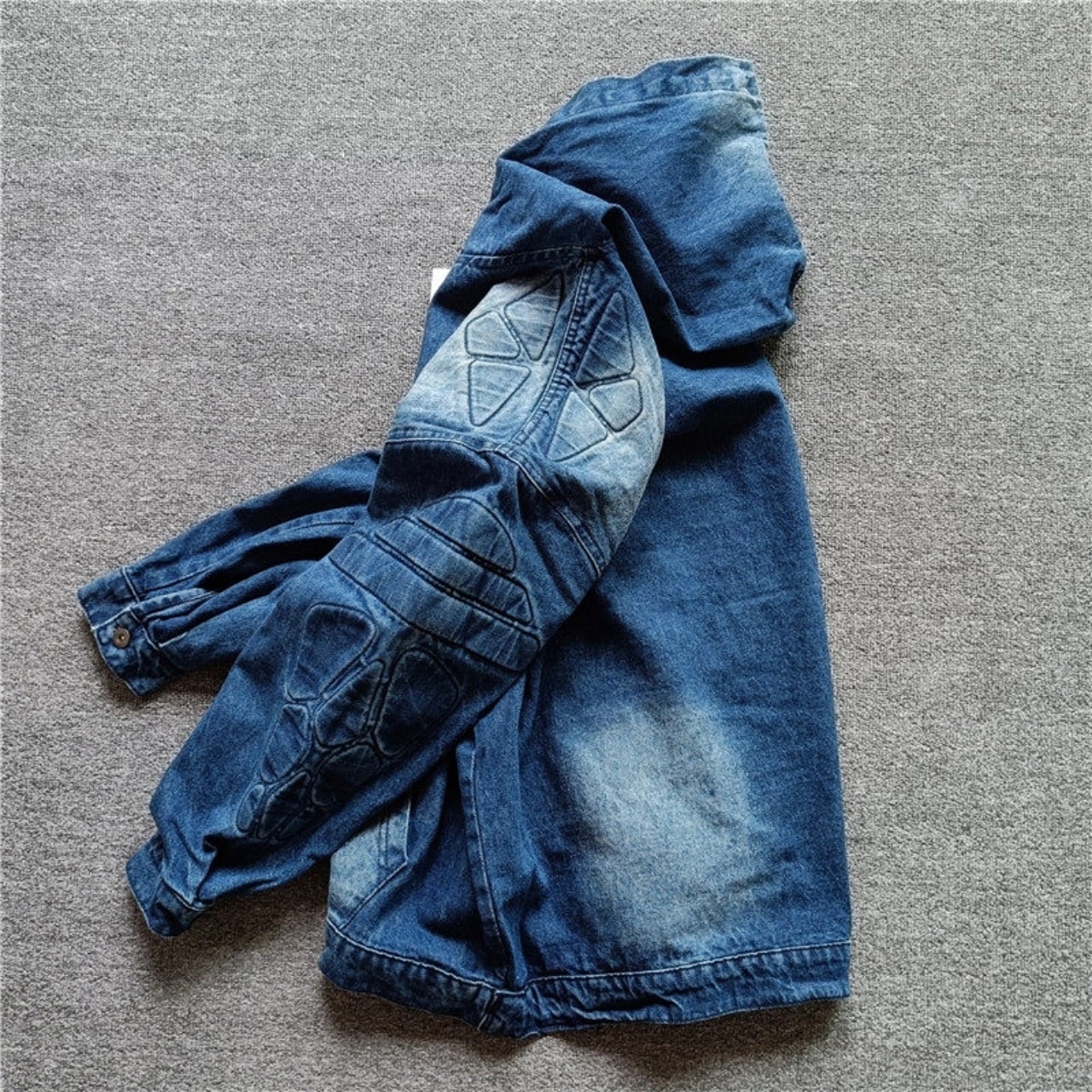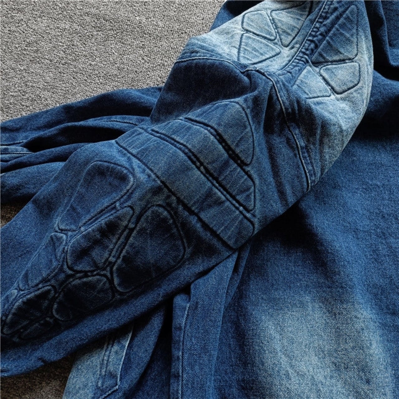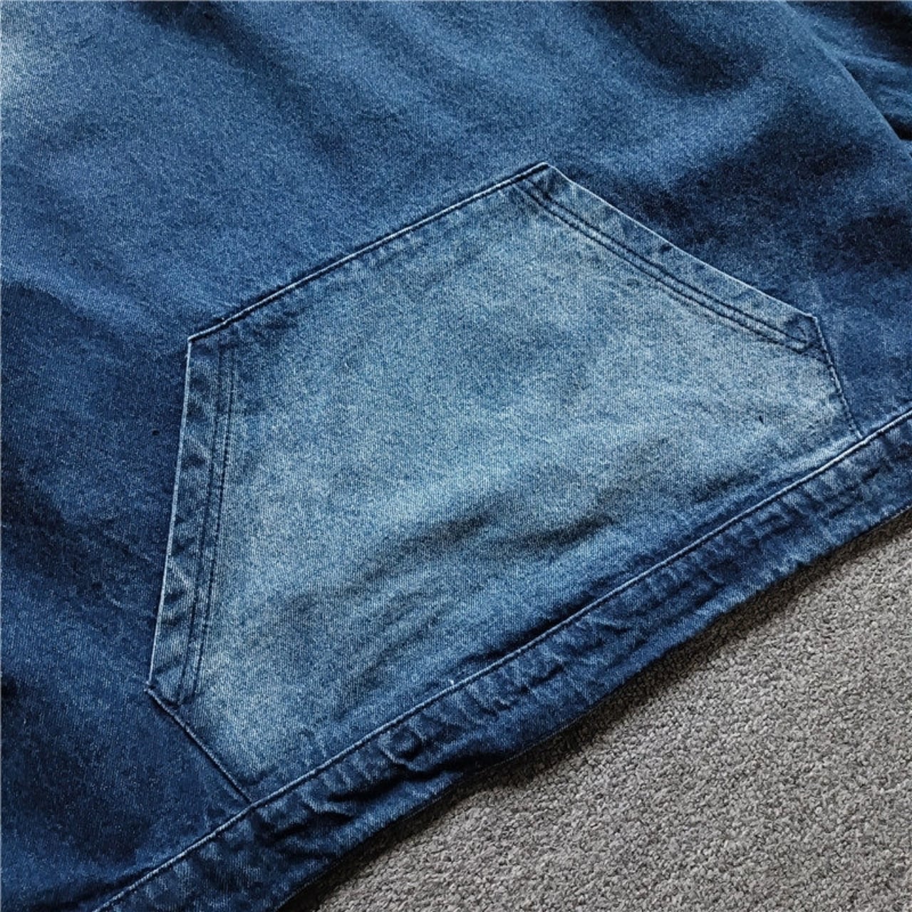 ウォッシュドデニムを使用したプルオーバーデニムジャケット。