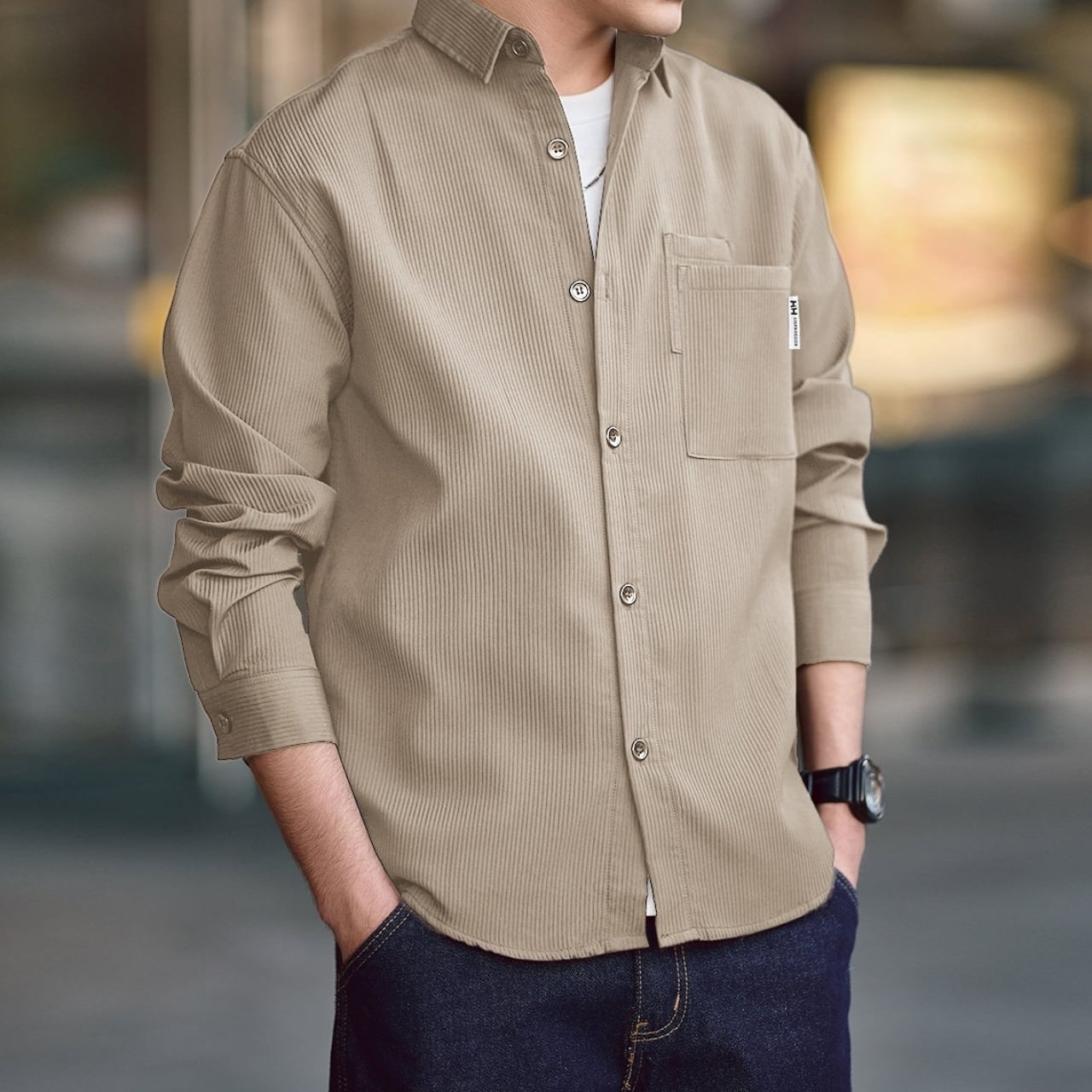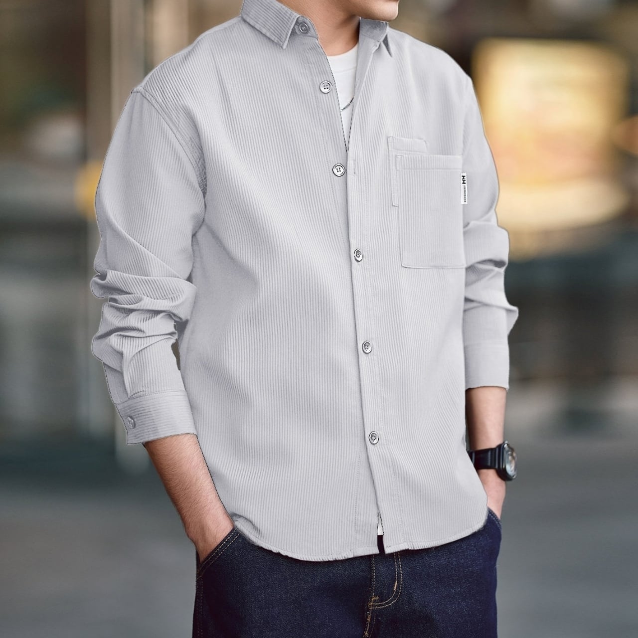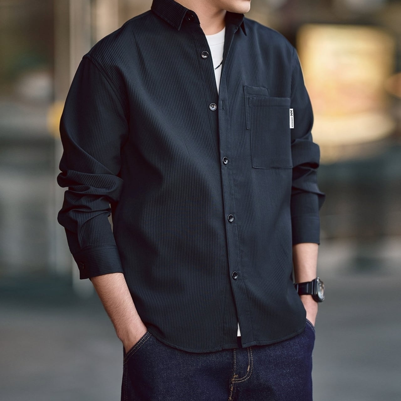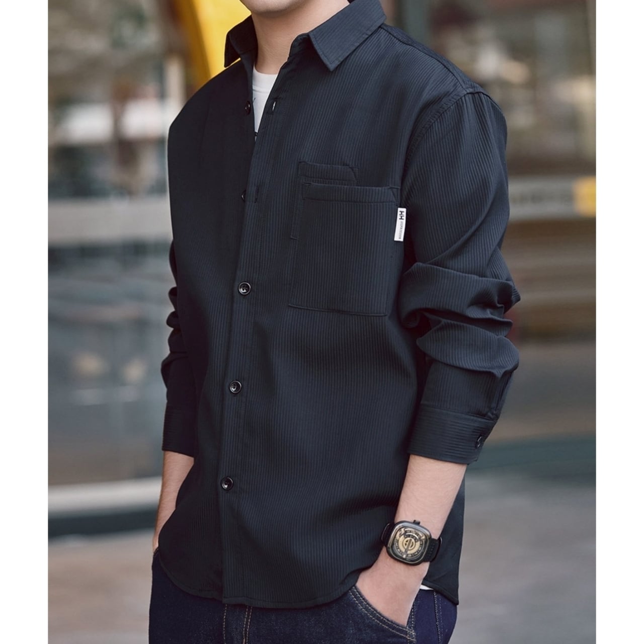 ストライプがデザインのポイントとなったシックなシャツ。