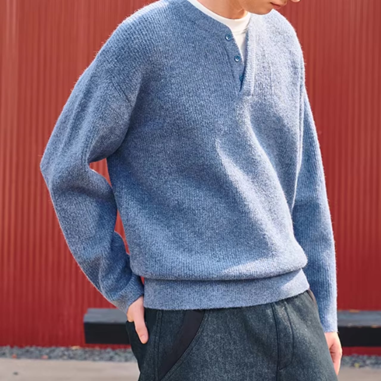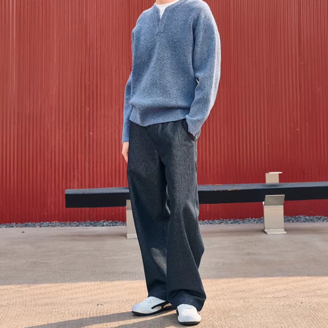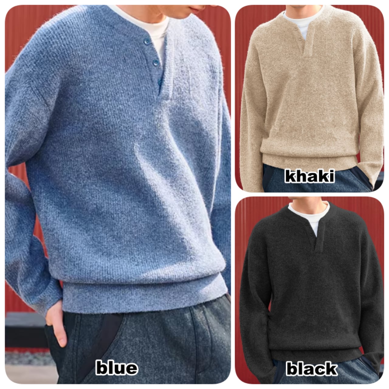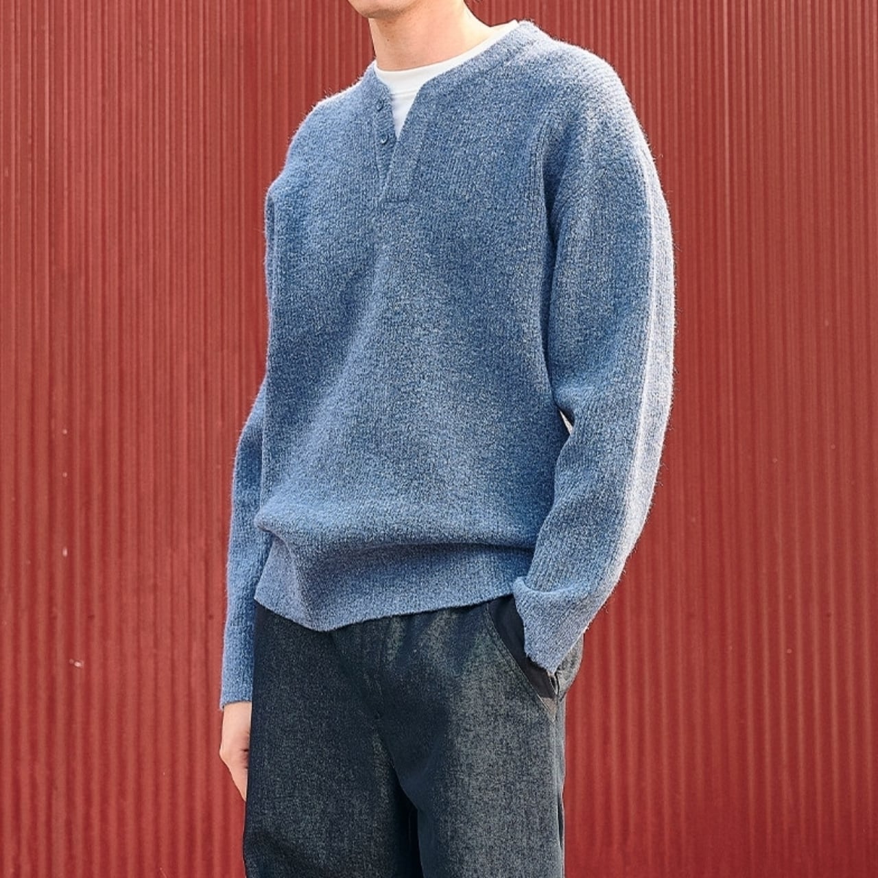 白のインナーが顔を覗かせるヘンリーネックデザインで、おしゃれな印象を与えます♪