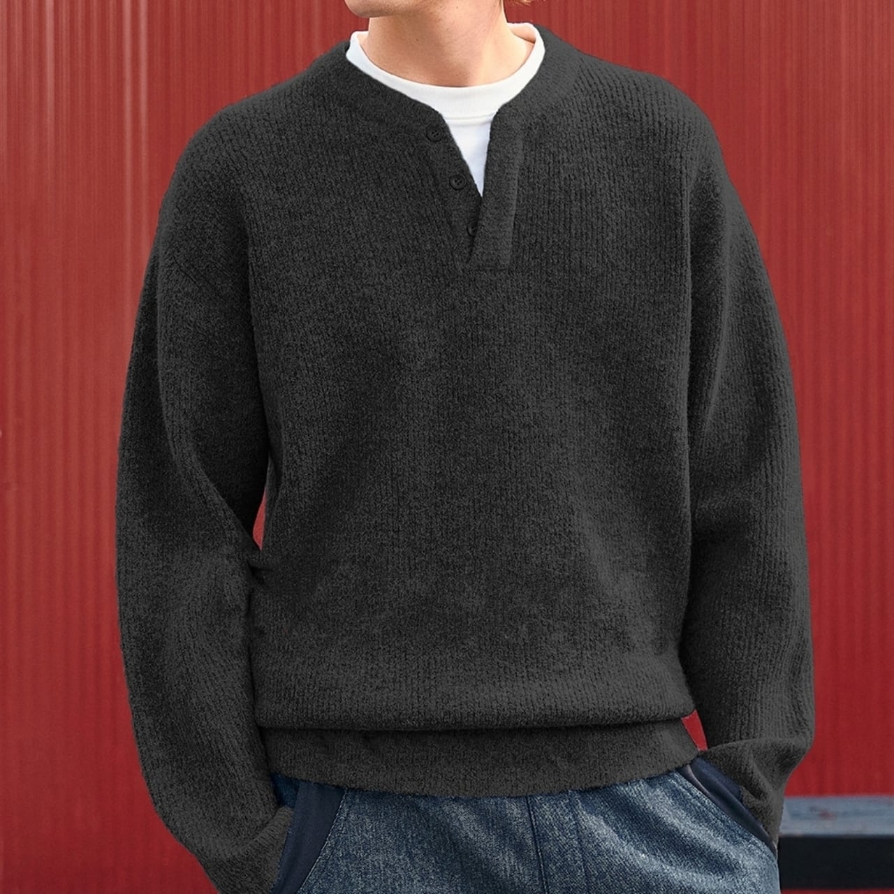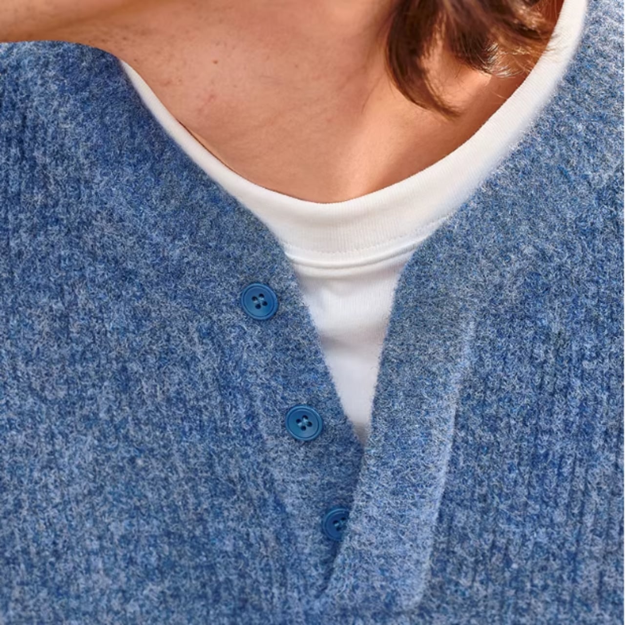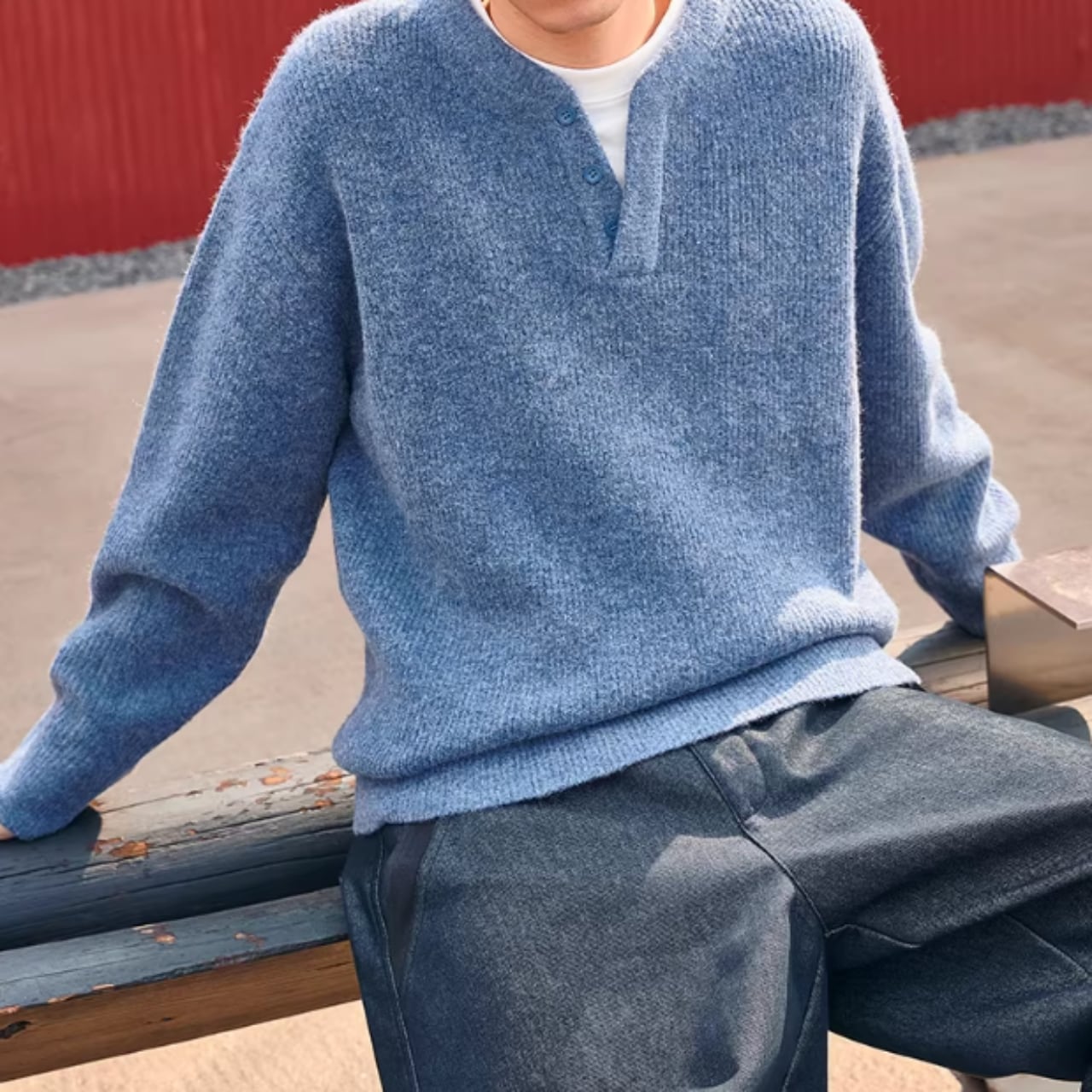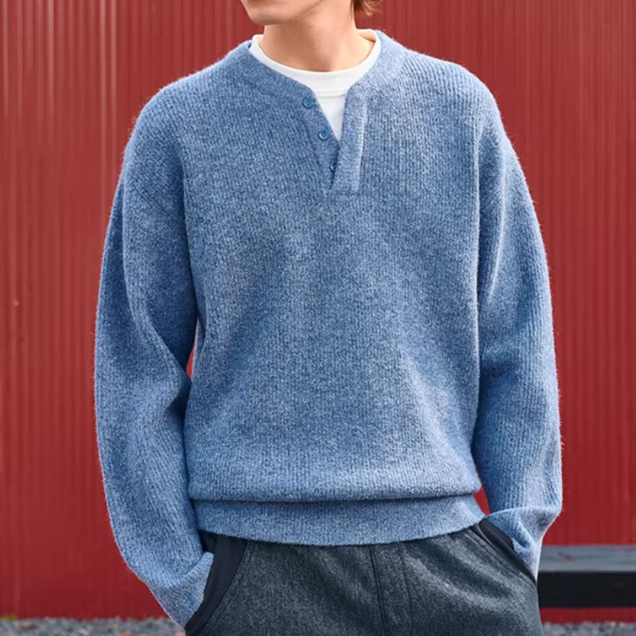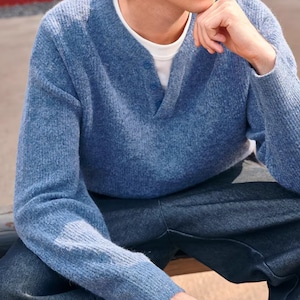 白のインナーが顔を覗かせるヘンリーネックデザインで、おしゃれな印象を与えます♪