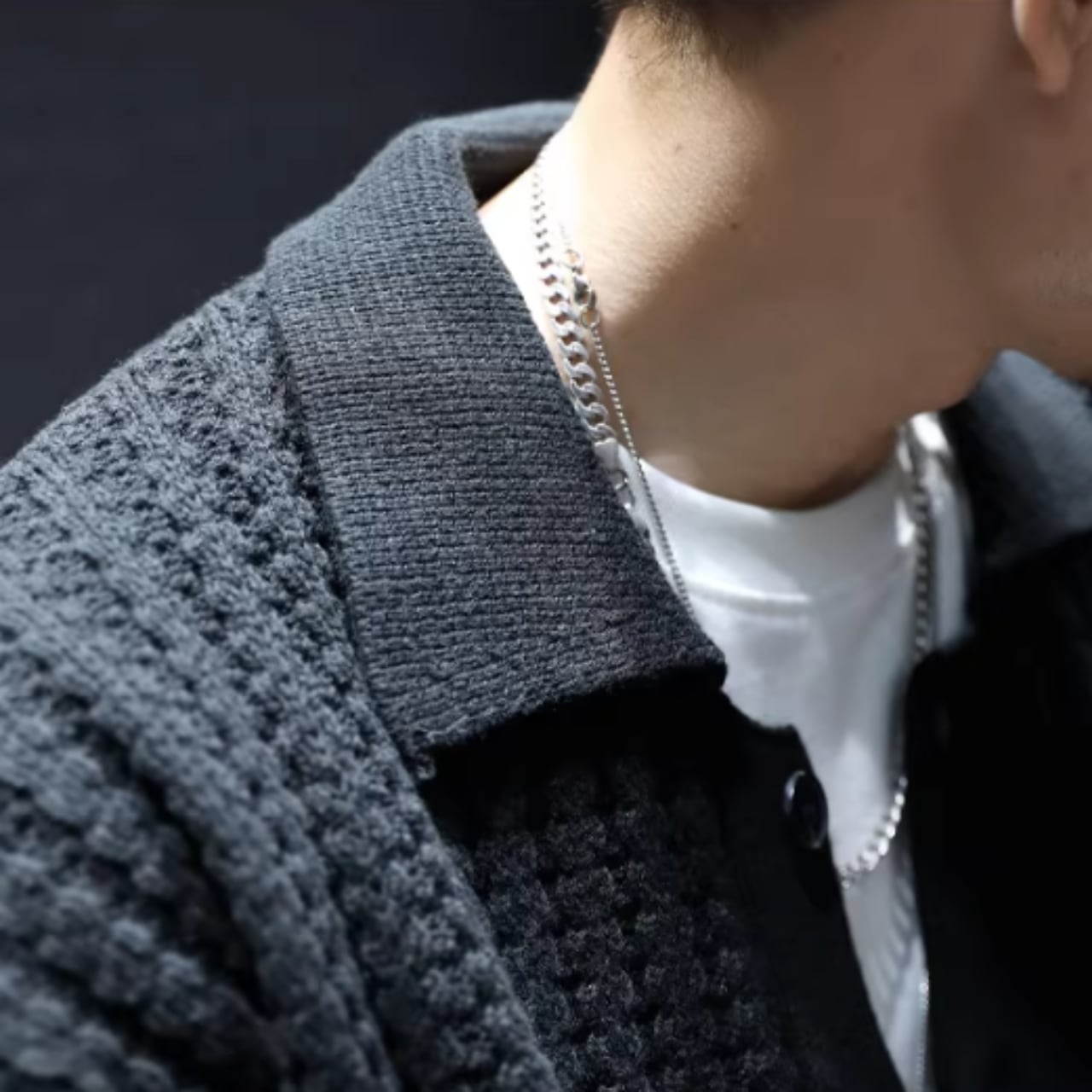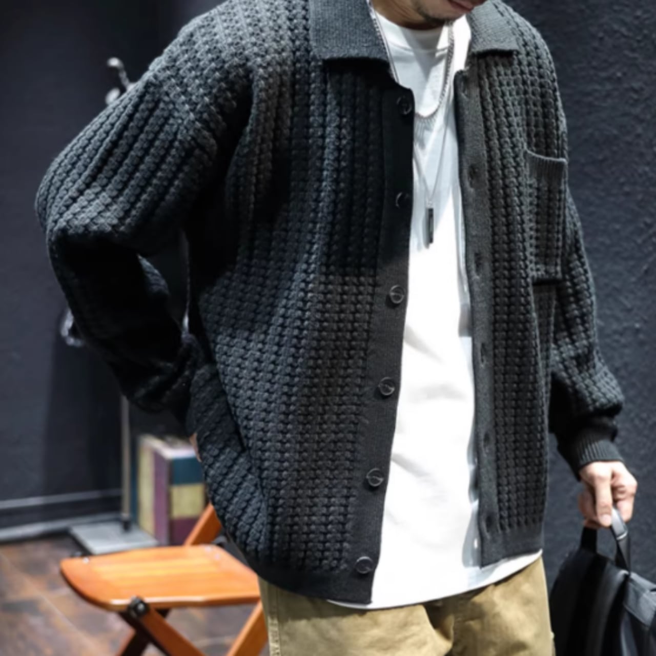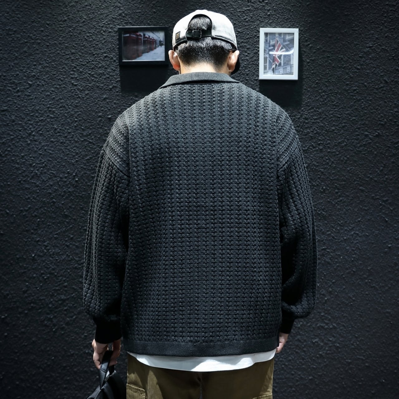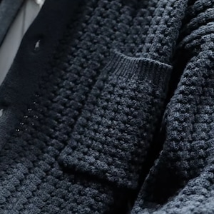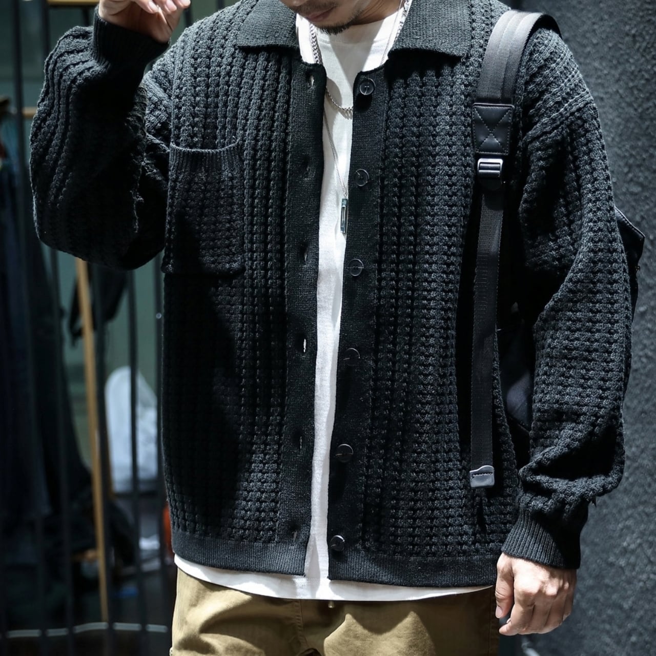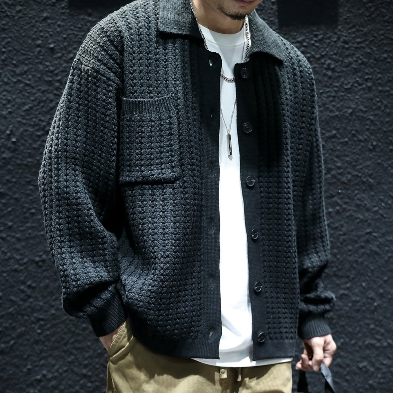 レトロな雰囲気が魅力の襟付きカーディガン。