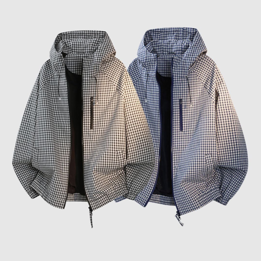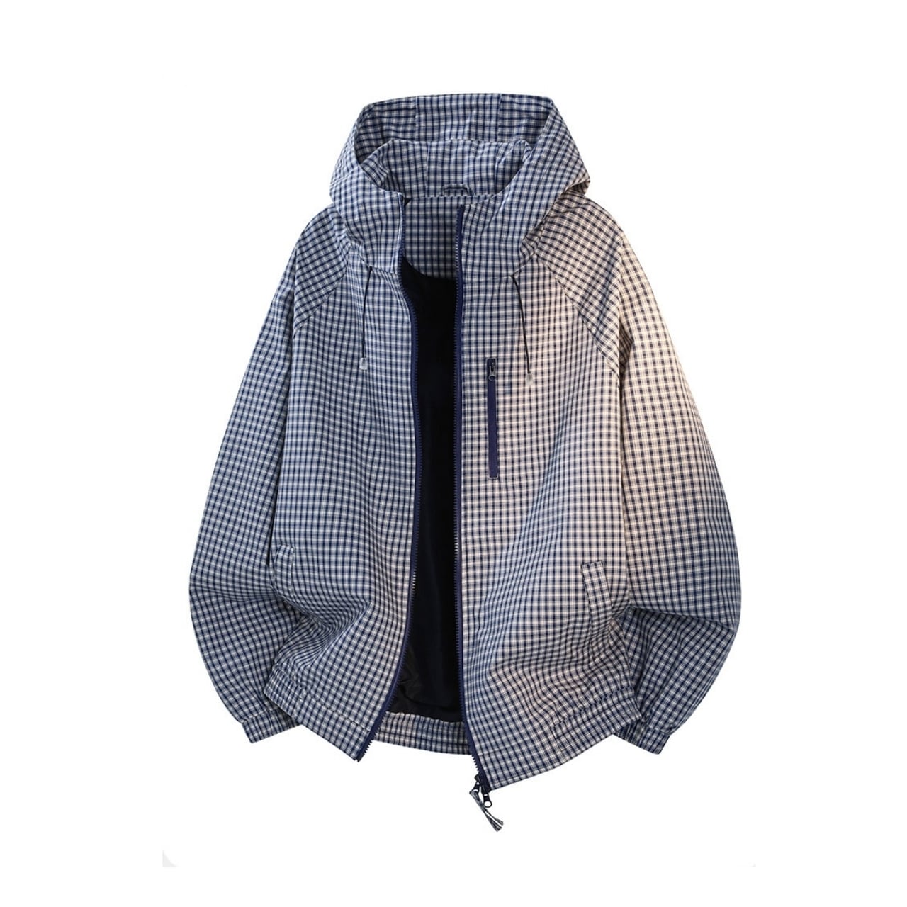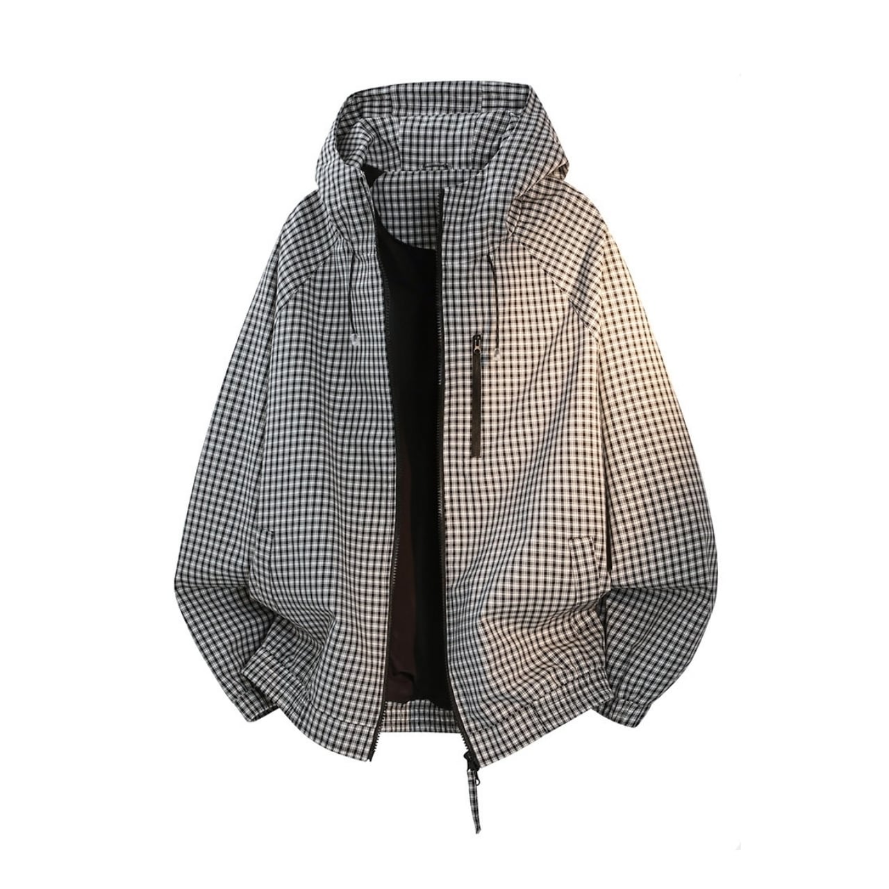 レトロ感漂うチェック柄のフーデッドジャケット。
