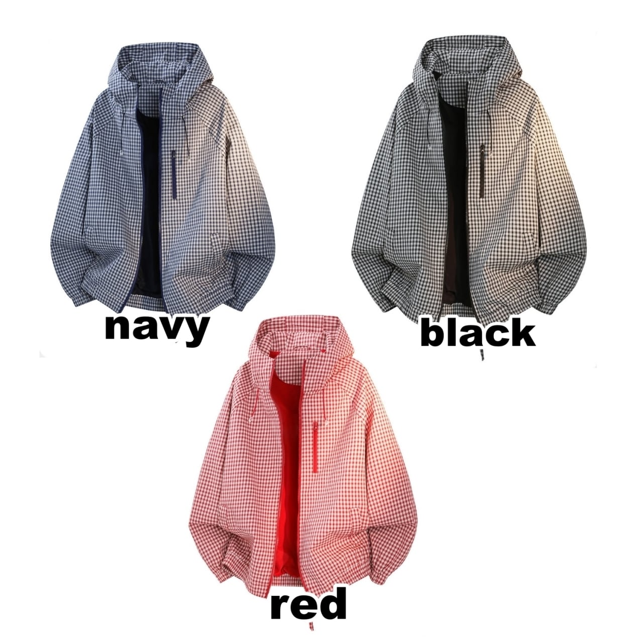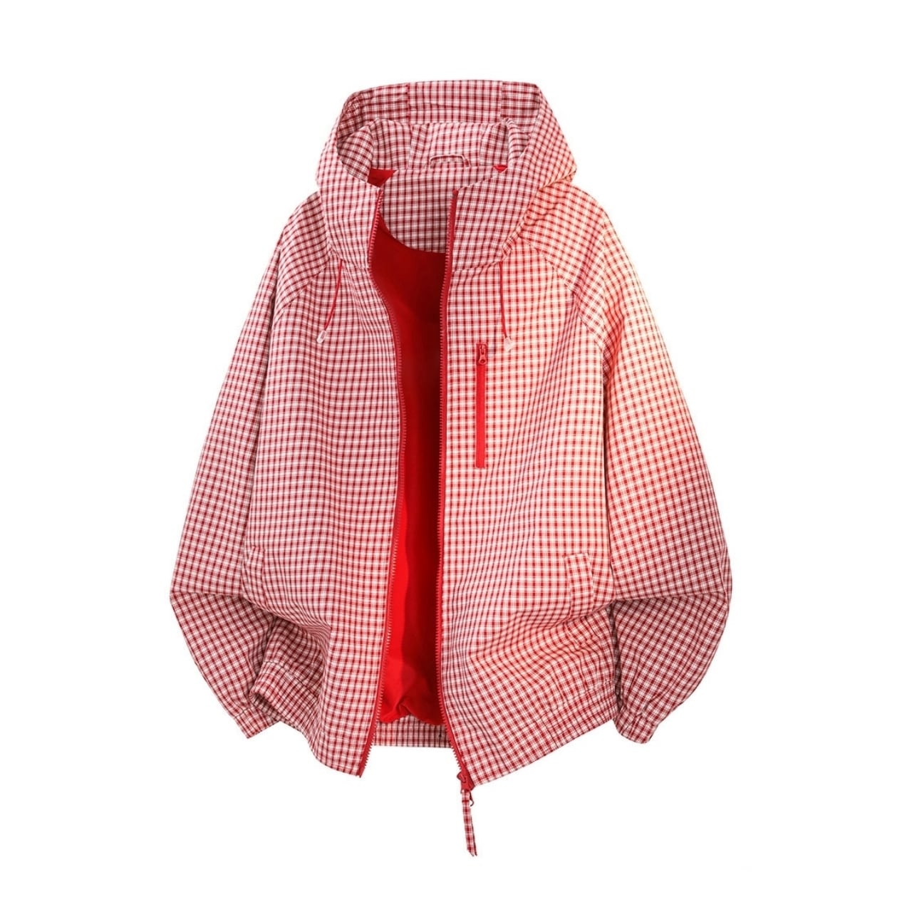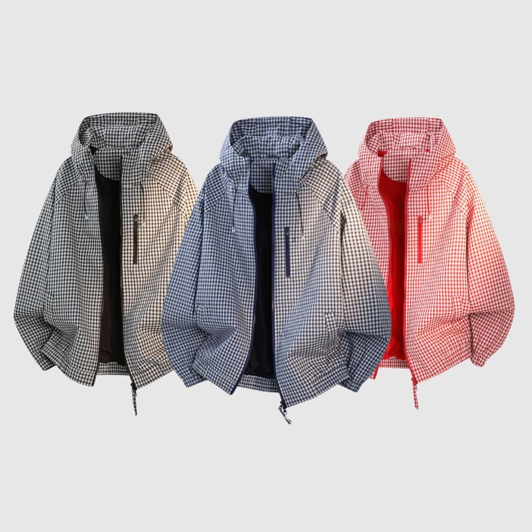レトロ感漂うチェック柄のフーデッドジャケット。