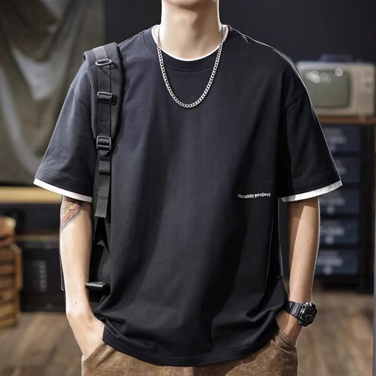 おしゃれを楽しむための必須アイテム、フェイクレイヤードの半袖Tシャツ。