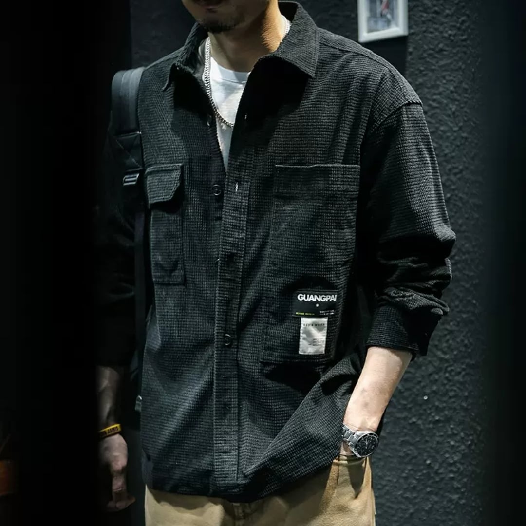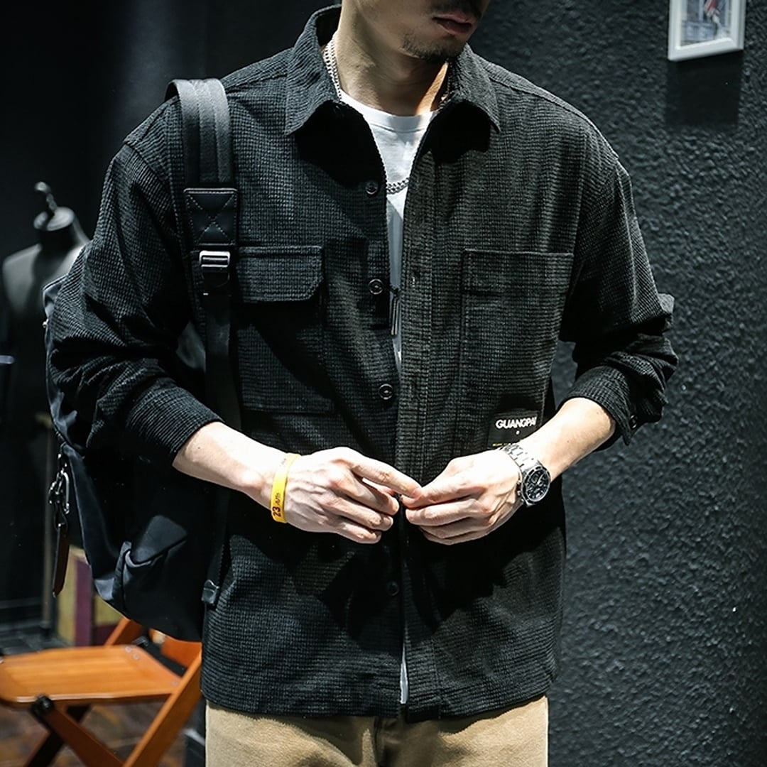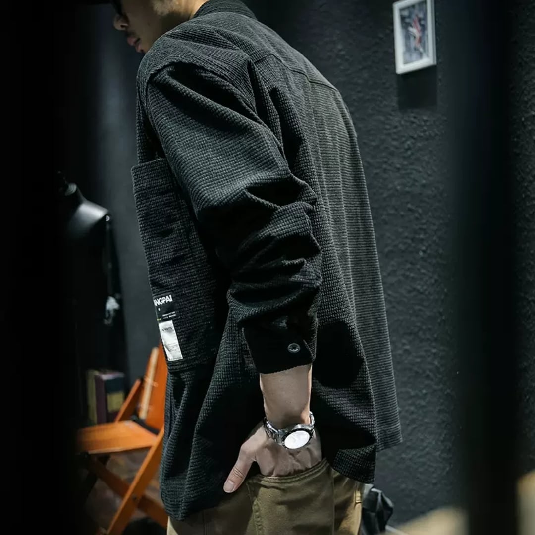 ポケットデザインがユニークなロングスリーブシャツ。