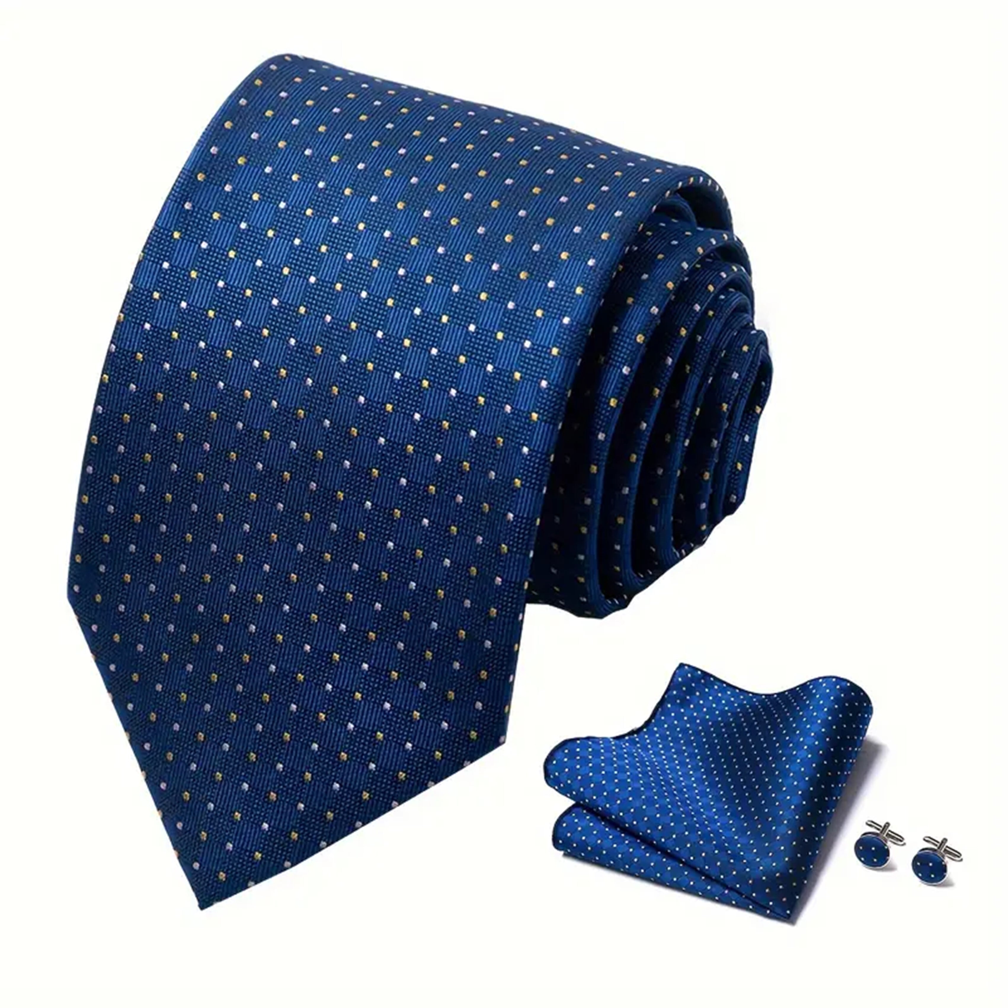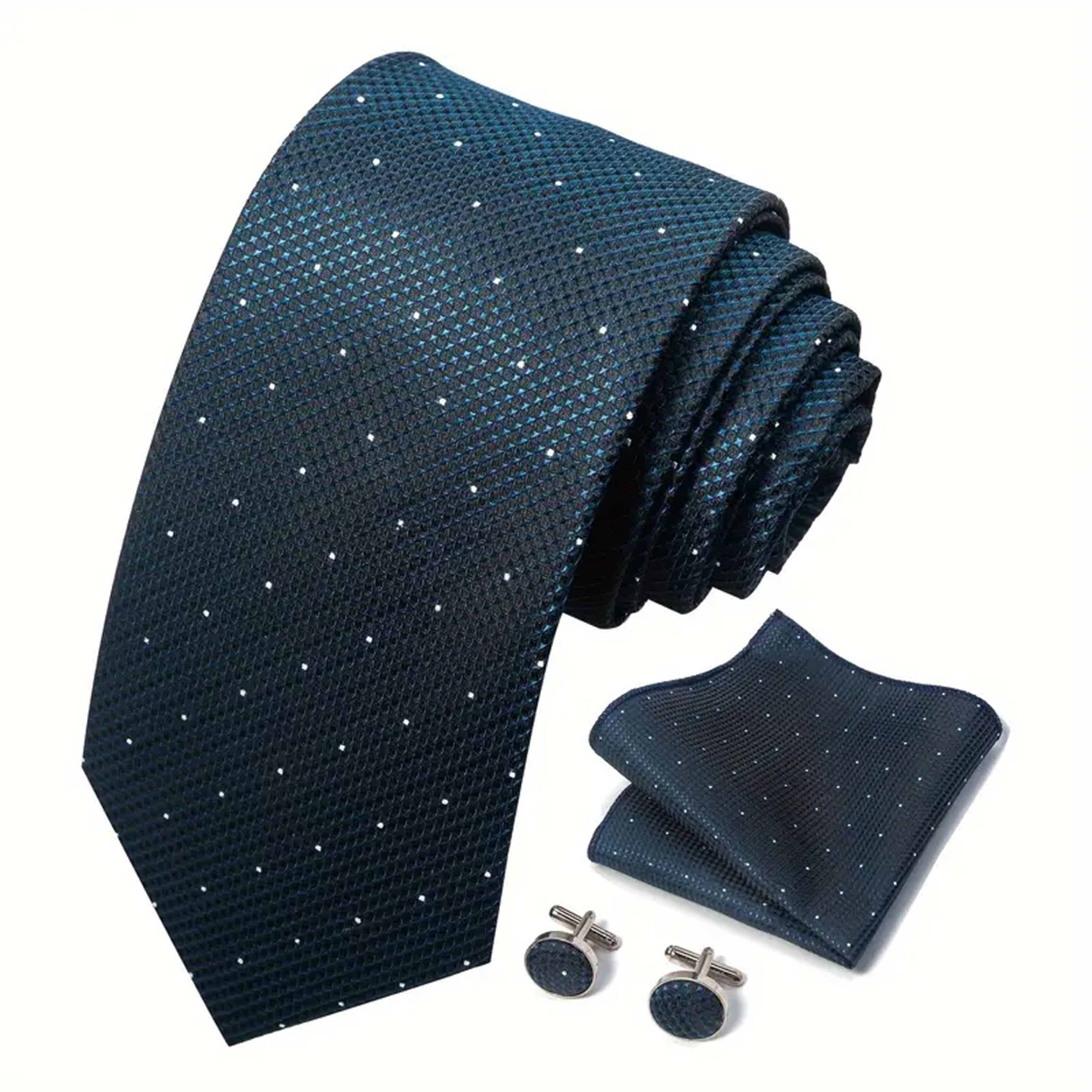 メンズ ネクタイ 【4色セット】 レギュラータイ×ハンカチ×カフスボタンセット HT038