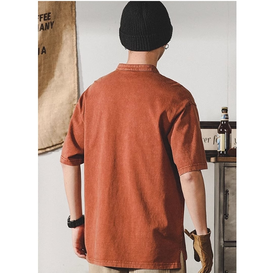 大人っぽいヘンリーネックデザインのショートスリーブTシャツ。