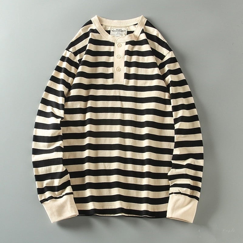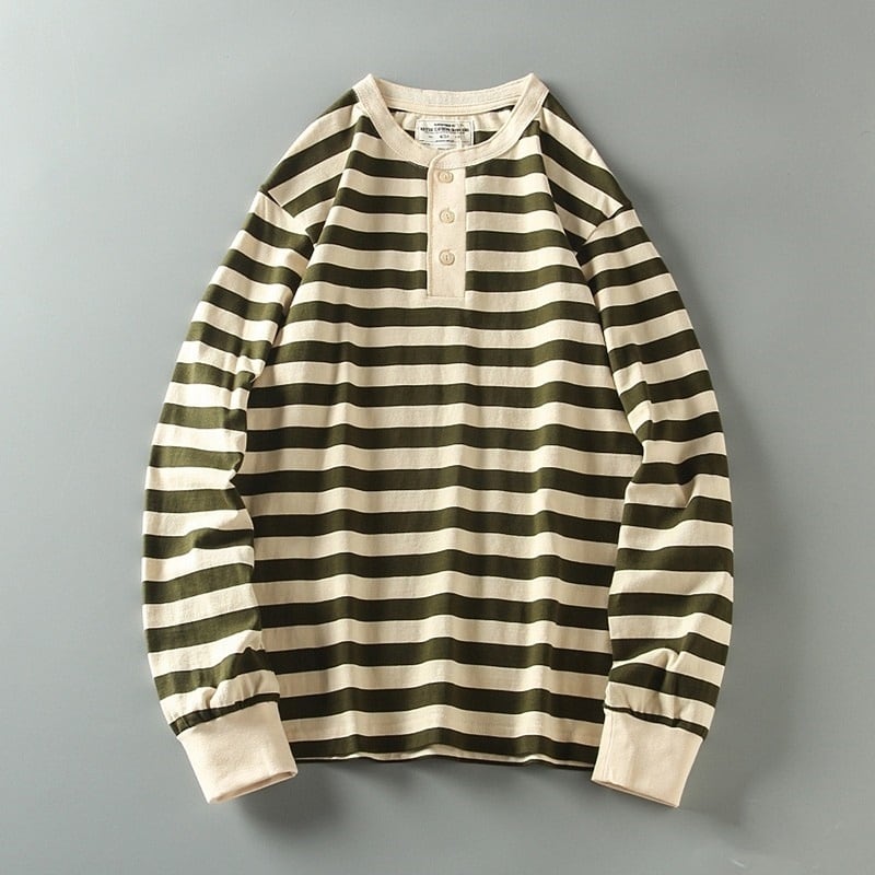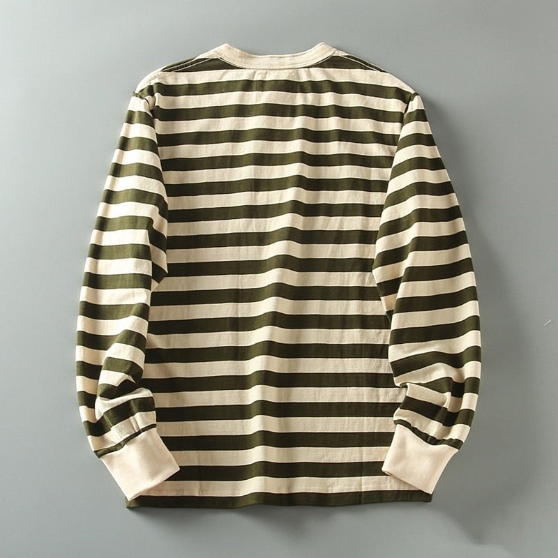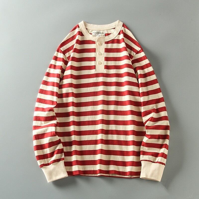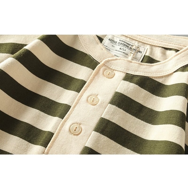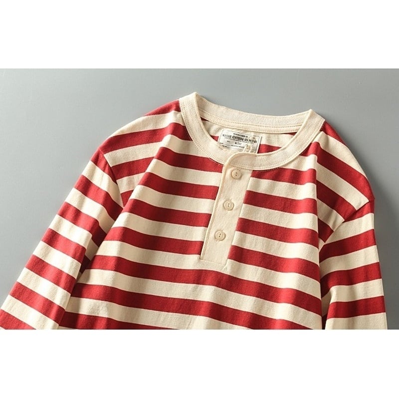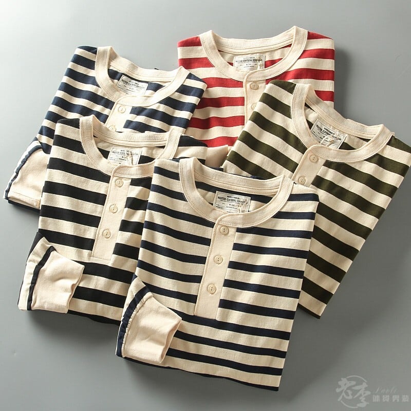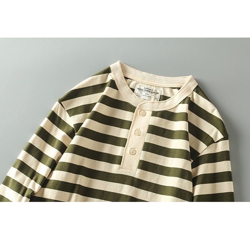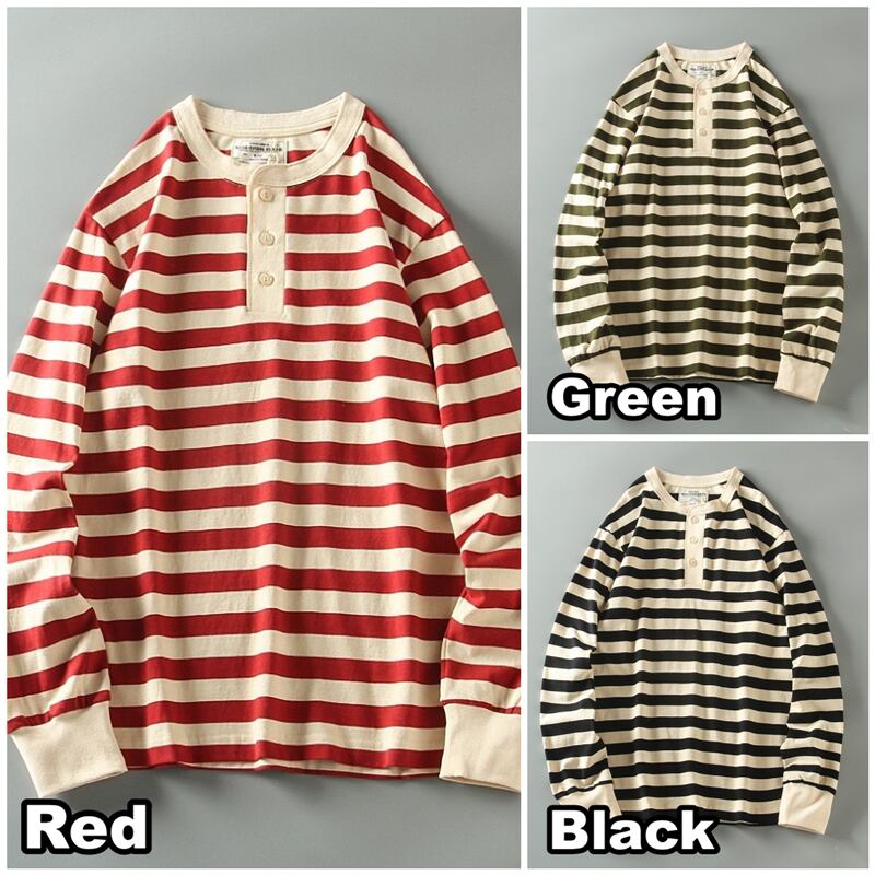 ヘンリーネックワイドボーダー長袖Tシャツ H2146