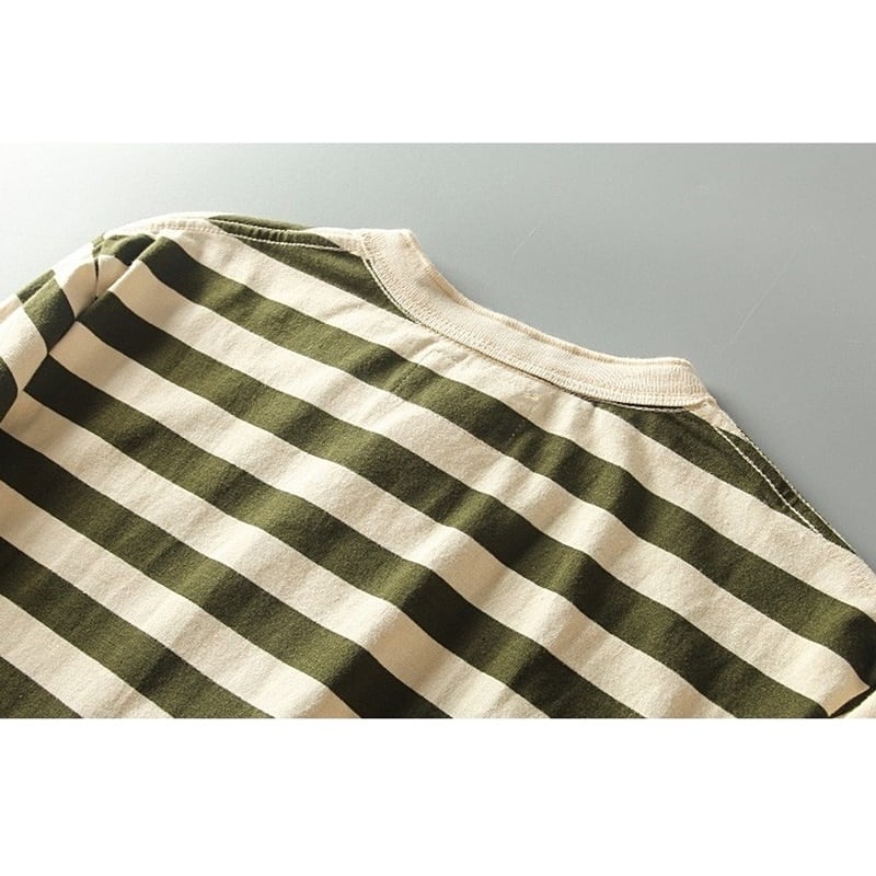 カジュアルなボーダー柄長袖Tシャツ。