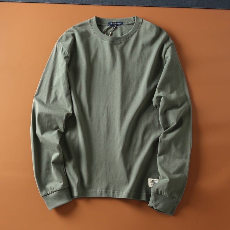 ベーシックで飽きの来ないラウンドネックの長袖Tシャツ。